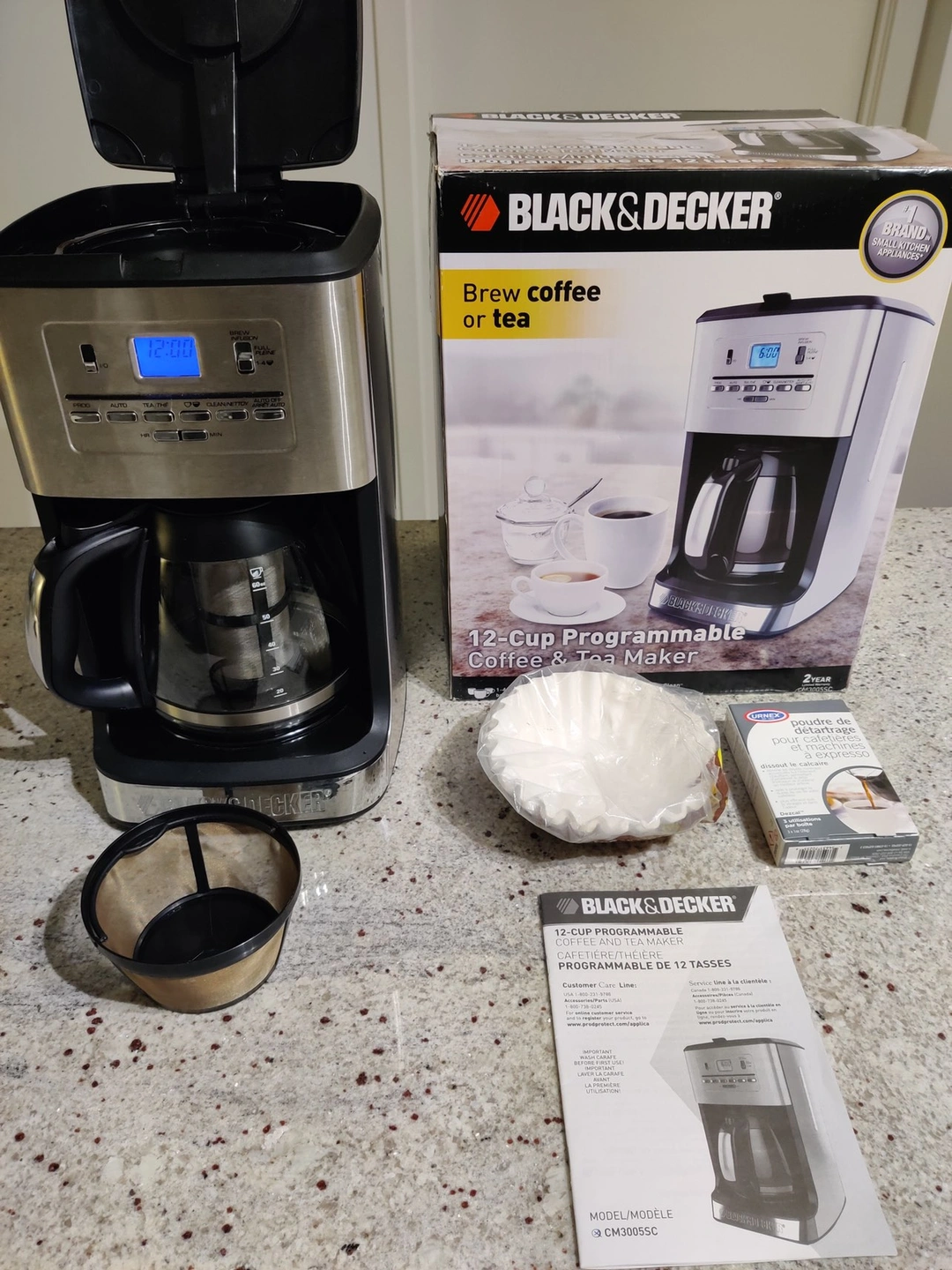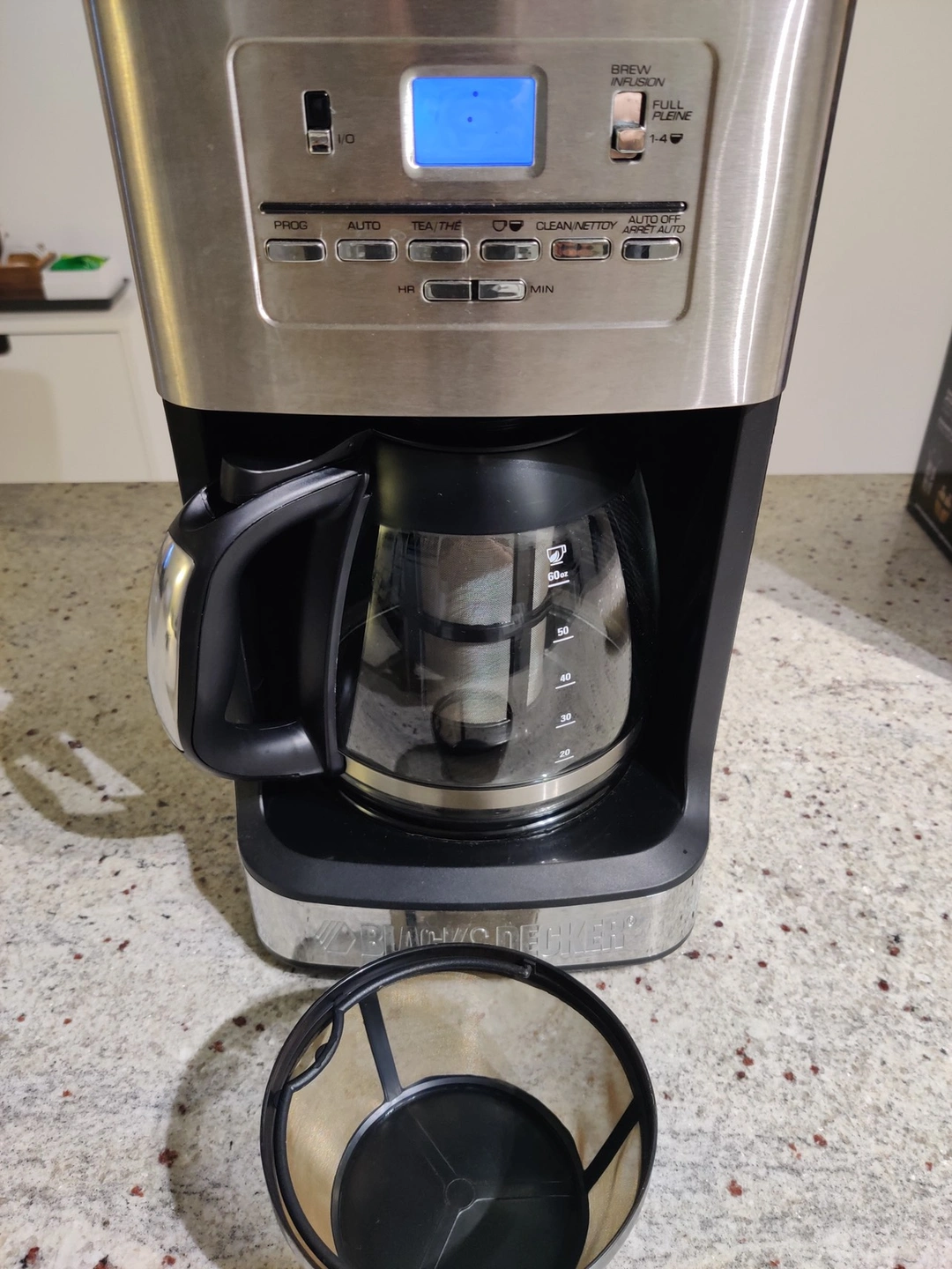Good condition Black and Decker 12 Cup Programmable Coffee Maker with reusable filter.