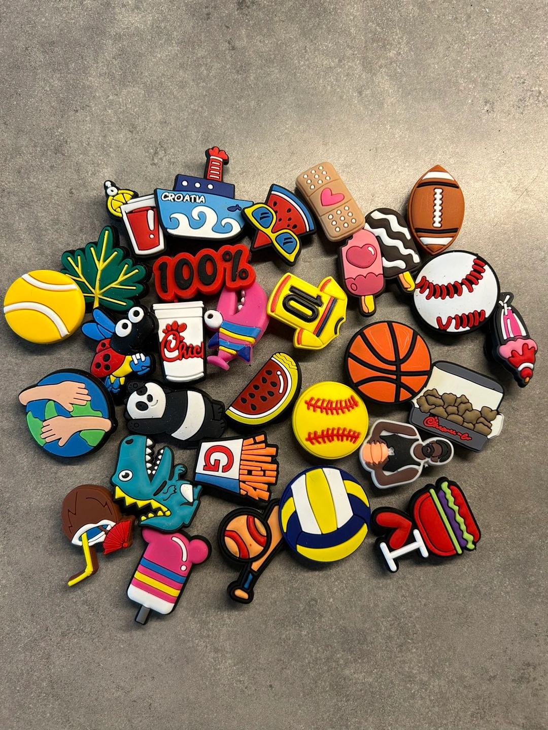 About 25 random charms for your crocs. New and unused - got a larger bag and took out the ones I wanted - these are the rest! Pickup near Lower Sherbourne and Queens Quay East.