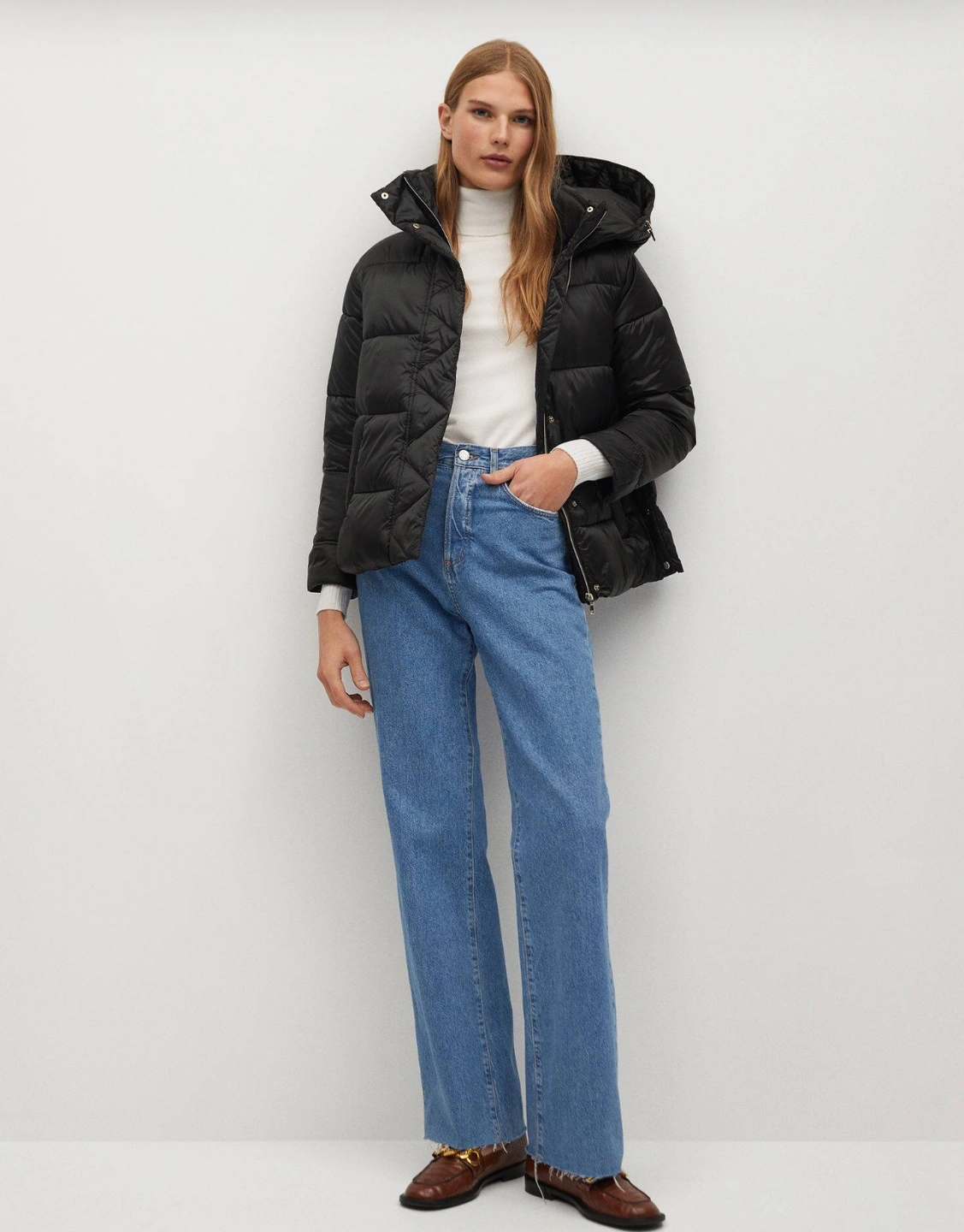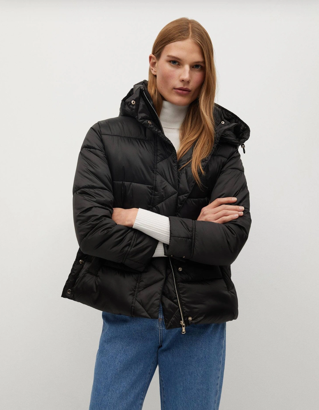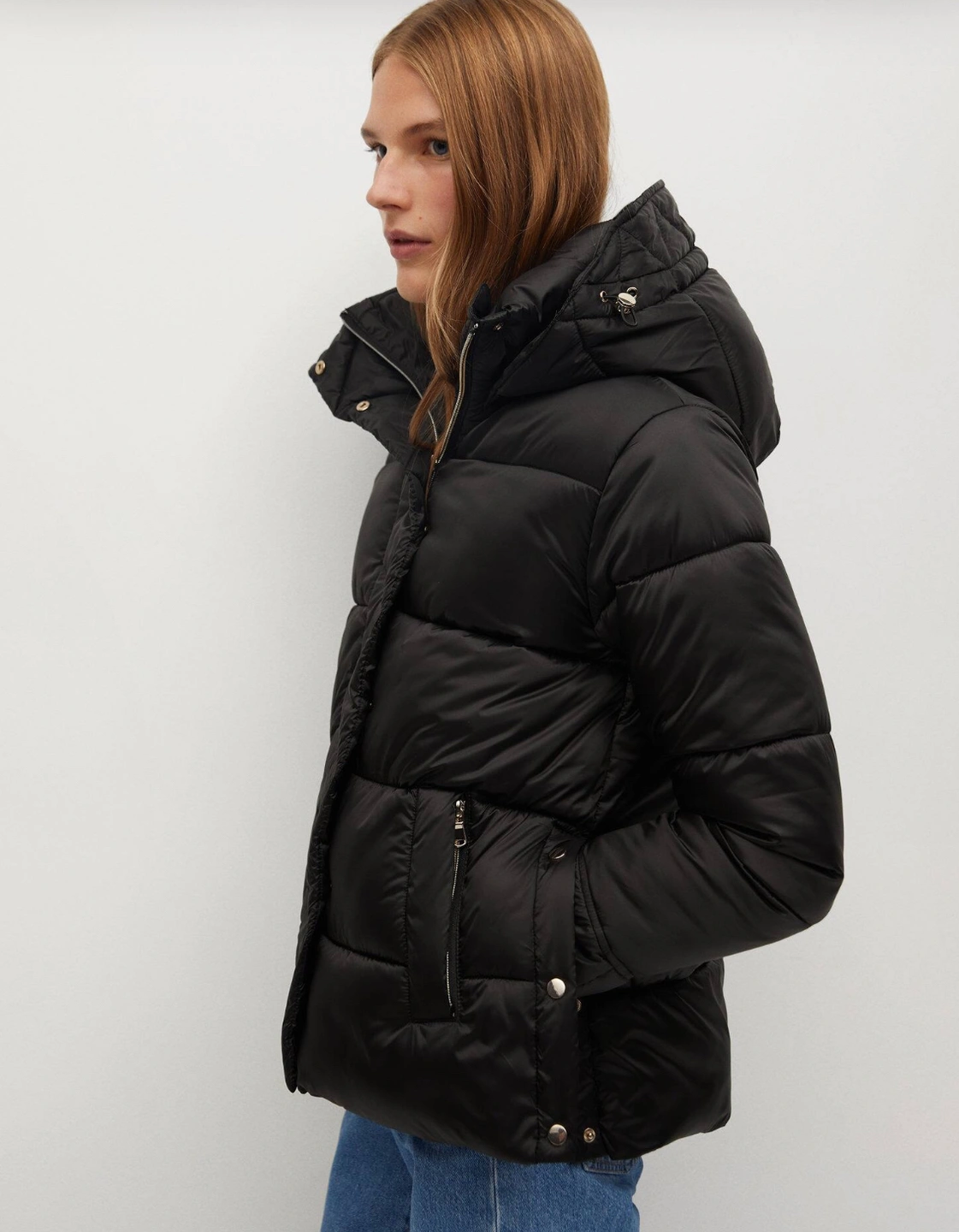 Mango Detachable Hood Quilted Jacket Coat