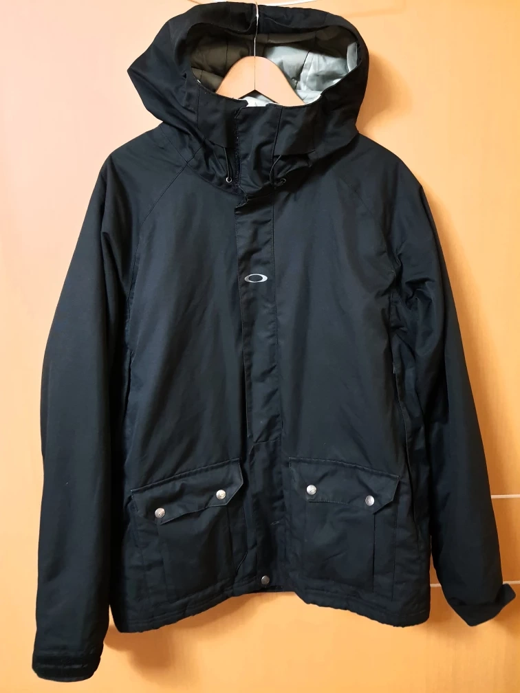 Oakley ski jacket with snow skirt, plenty of pockets and ventilation zippers. It's lightweight but stays warm, especially when zipped up fully. Excellent for layering as a winter jacket too.