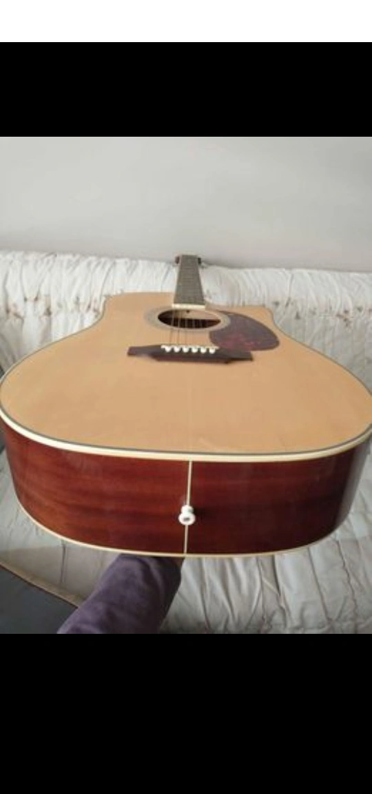 Northland Acoustic Electric Guitar in very good condition comes with preamp electronics (new 9volts battery installed). Set up the strings to low action for easy playing. Some minor scratches and dents may appear but are fully functional and in overall great shape.