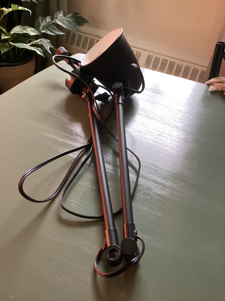 No longer has the wall mount bracket but includes the desk clamp bracket. The middle joint has never been very tight so not sure if it was originally assembled wrong (I got it second hand and thats just how its always been for me) but it works as a light if you don’t care about being able to easily reposition it or maybe you can figure out how to fix it.