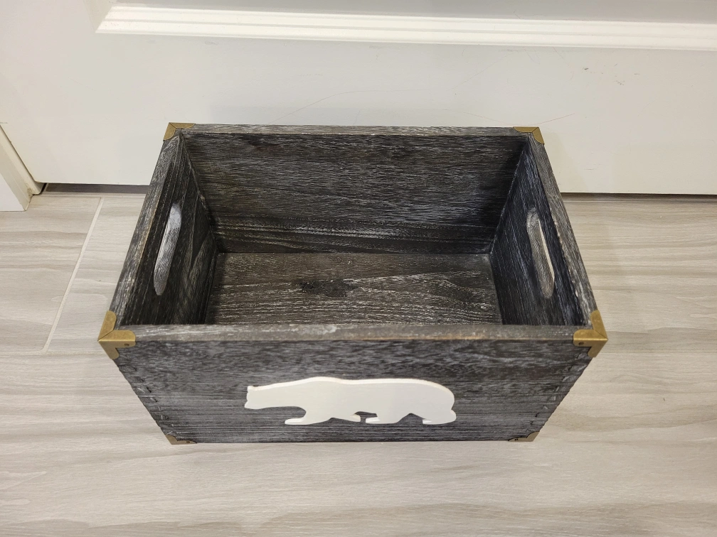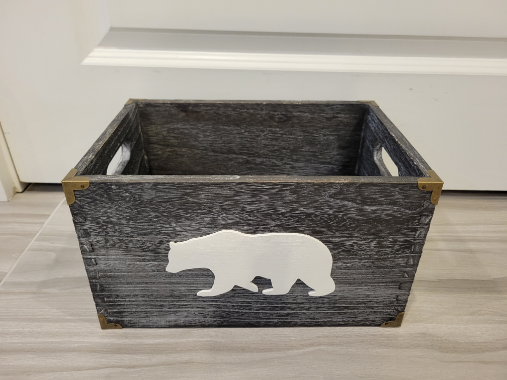 Deep Dark Grey Wooden Crate with White Polar Bear Shape