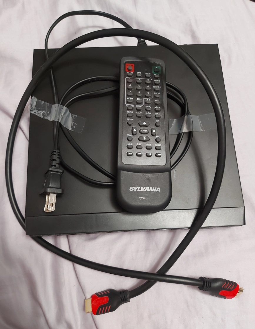 -Sylvania dvd player, controls and hdmi cable included