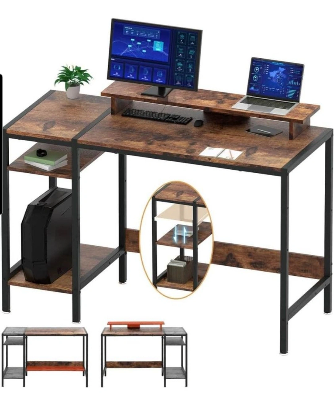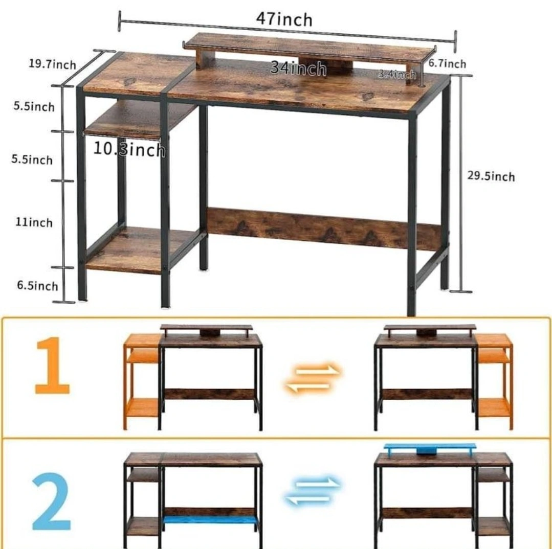 MINOSYS Gaming/Computer Desk - 47” Home Office Small Desk with Monitor Stand, Rustic Writing Desk for 2 Monitors, Adjustable Storage Space, Modern Design Corner Table.