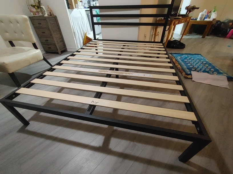 QUEEN SIZE METAL BED FRAME W BACKBOARD