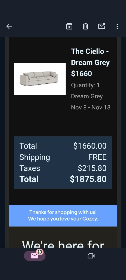 3 seater Cozey Ciello cloud couch delivery available on 28th