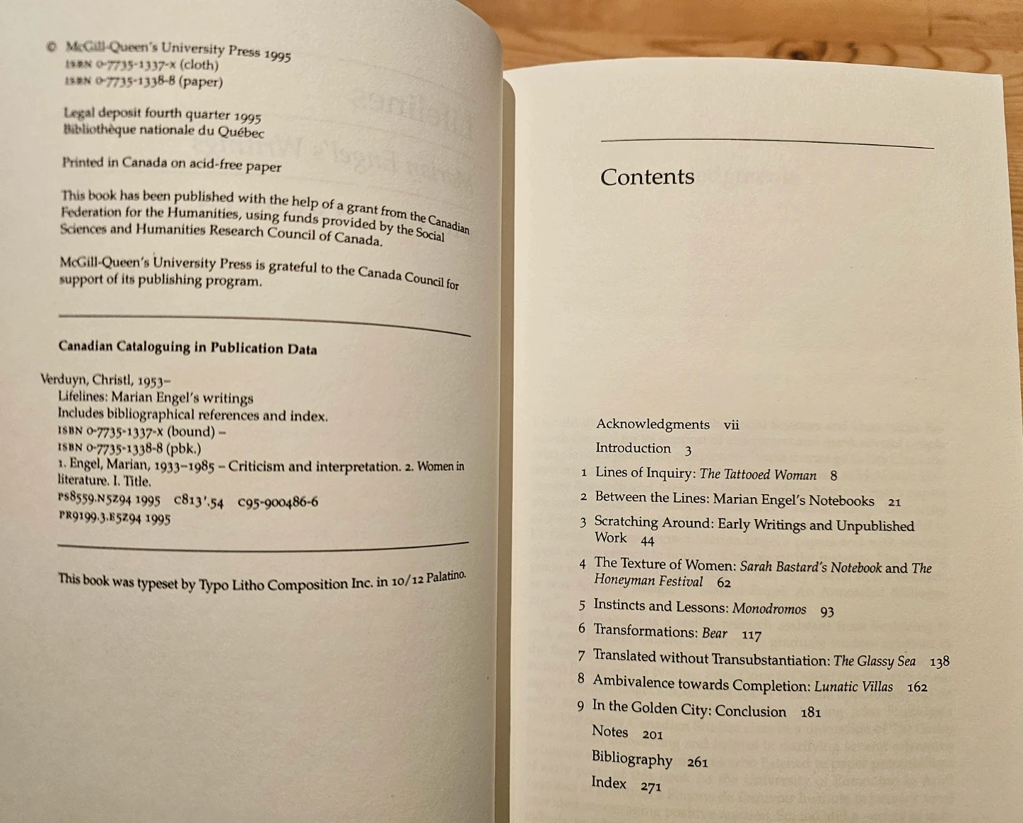 This book offers an in-depth reading of Marian Engel's novels from a feminist literary perspective. Christl Verduyn analyzes Engel's notebooks and other writings, showcasing the significance of her work. It's a substantial contribution to Canadian literature and women's studies. 278 pages.