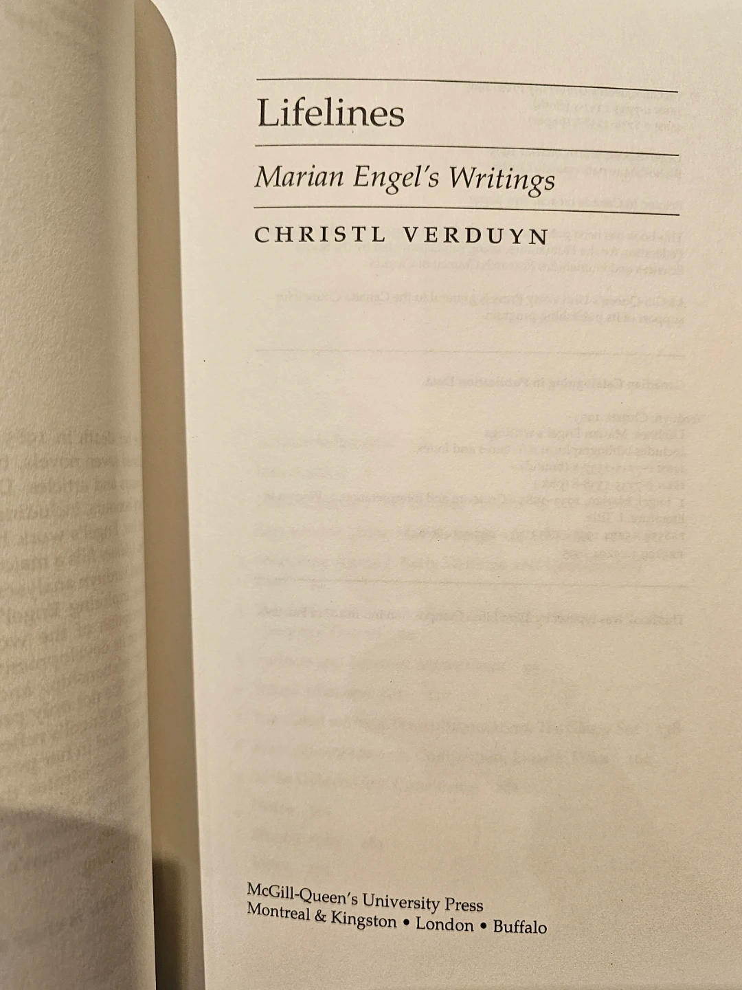 Lifelines: Marian Engel's Writings by Christl Verduyn Book