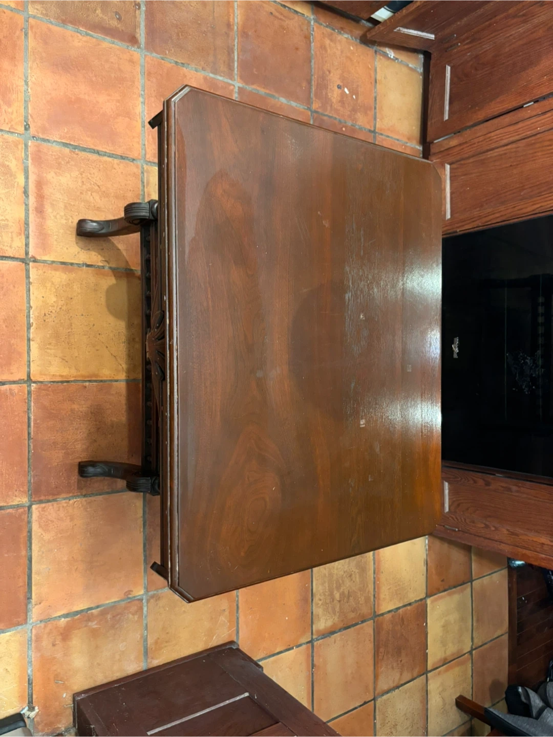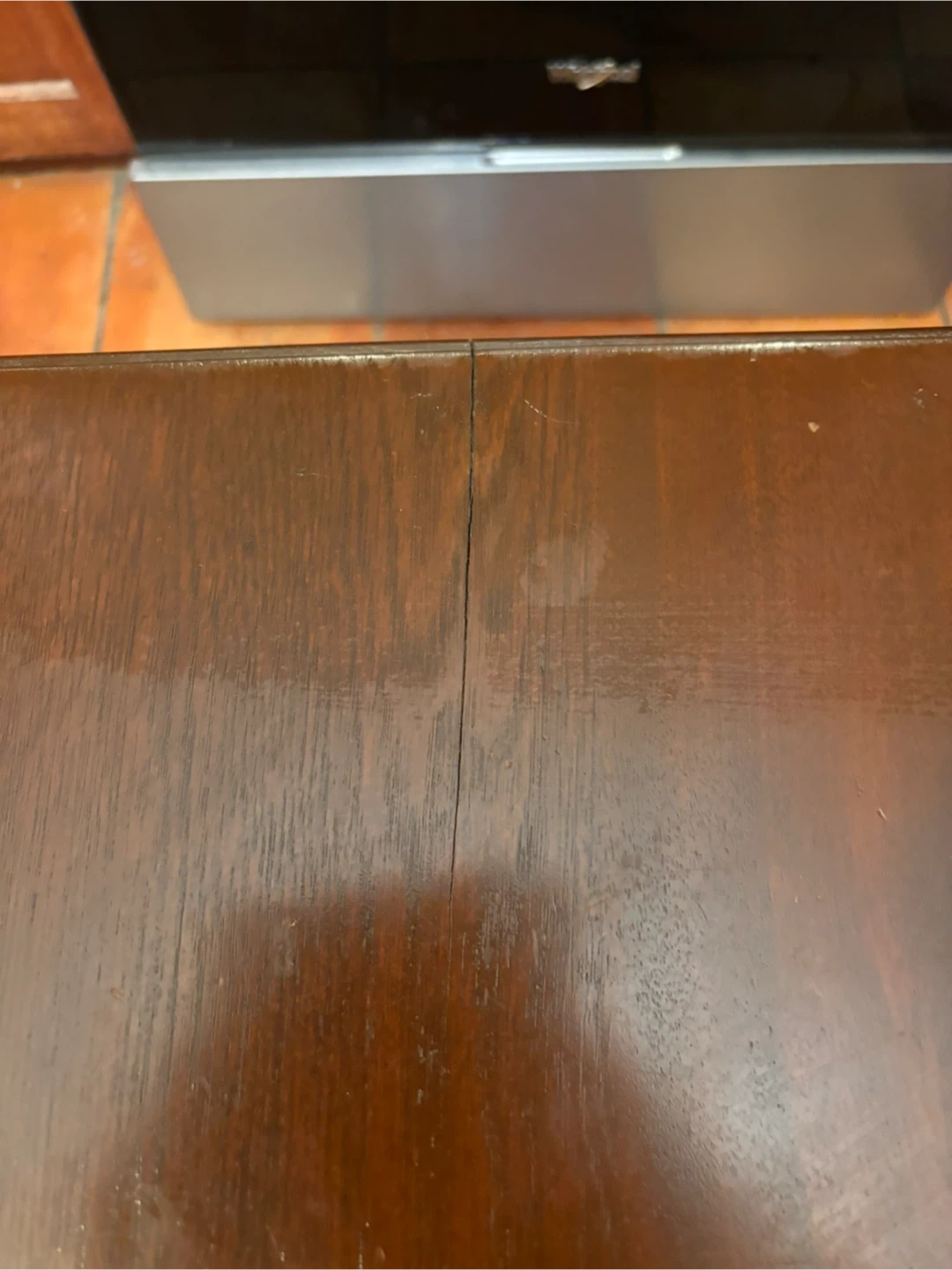 There is a small ~1.5” split in the tabletop consistent with age and natural wood movement, which does not affect stability and could easily be repaired if desired. The table still presents beautifully and has lots of antique charm.