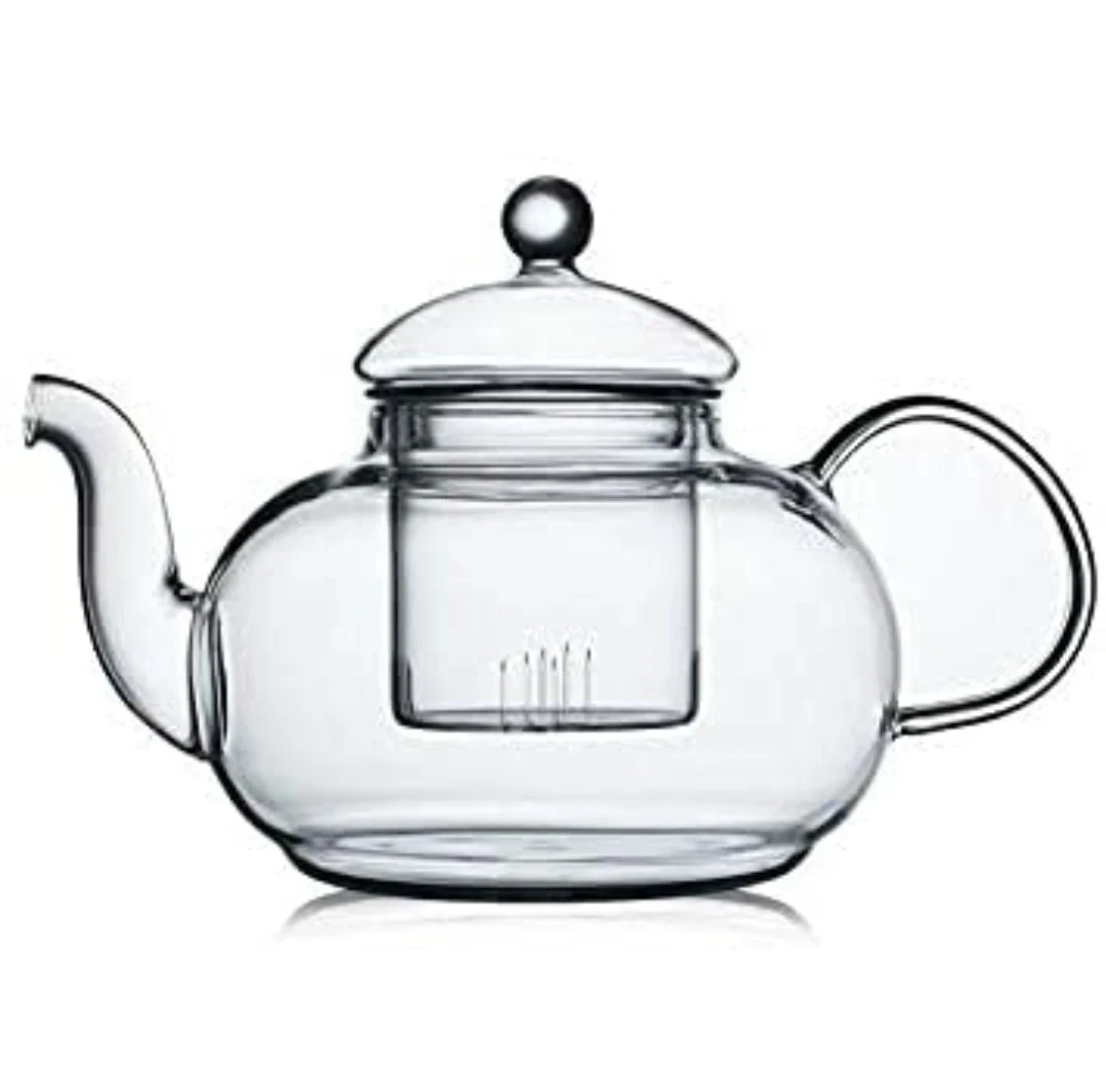 BNIB high quality borosilicate glass teapot. Comes with a glass strainer. Lightweight and more thermal shock resistant than soda lime glass. $30 for the teapot.