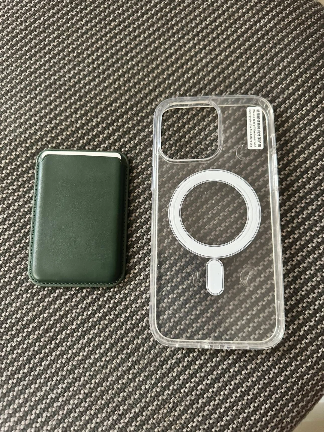 Magnetic wallet card sleeve holder, wireless charging Iphone 14 pro max case. Still have plastic cover on the case. Never used. Bought it as an extra case.