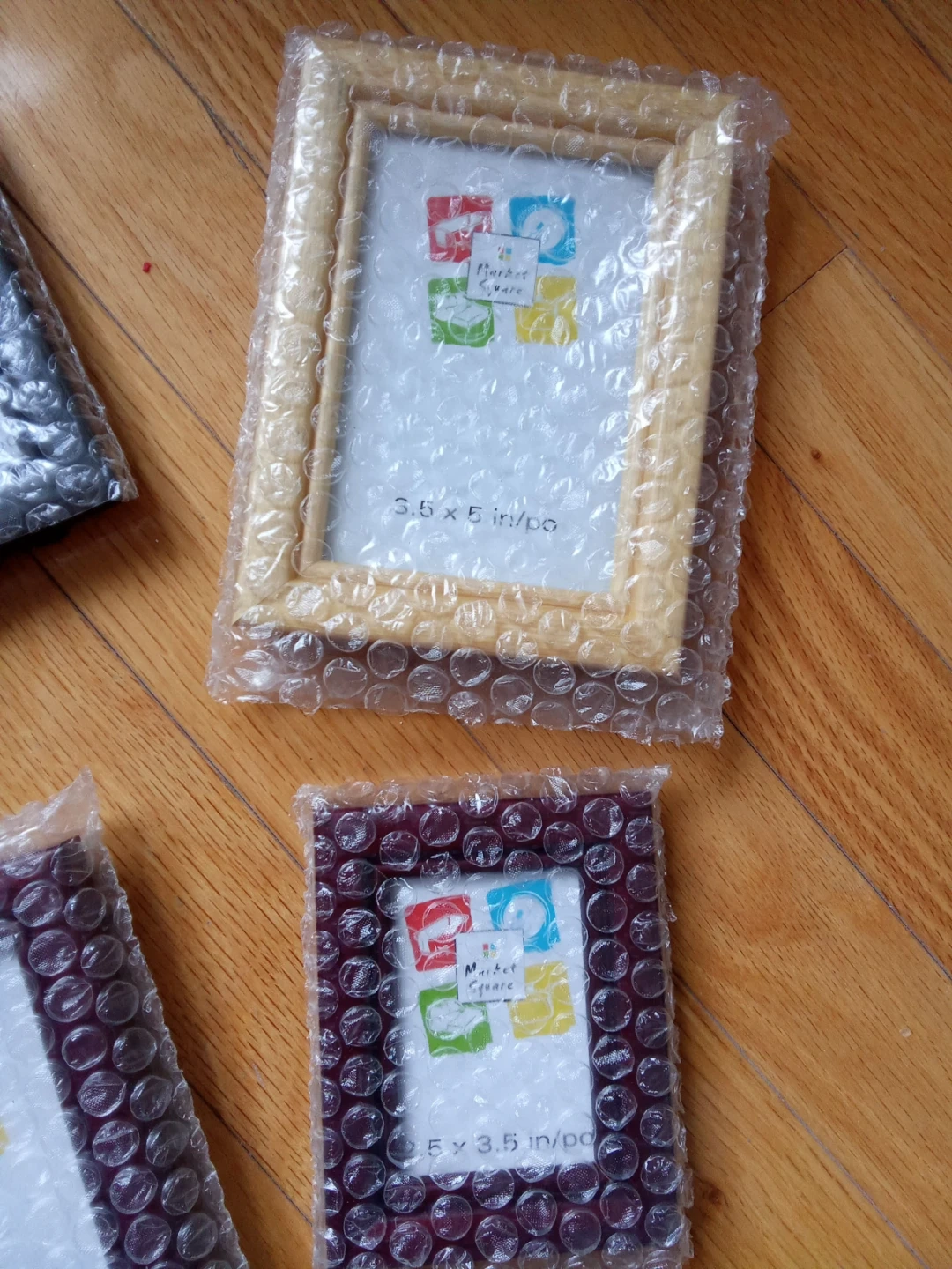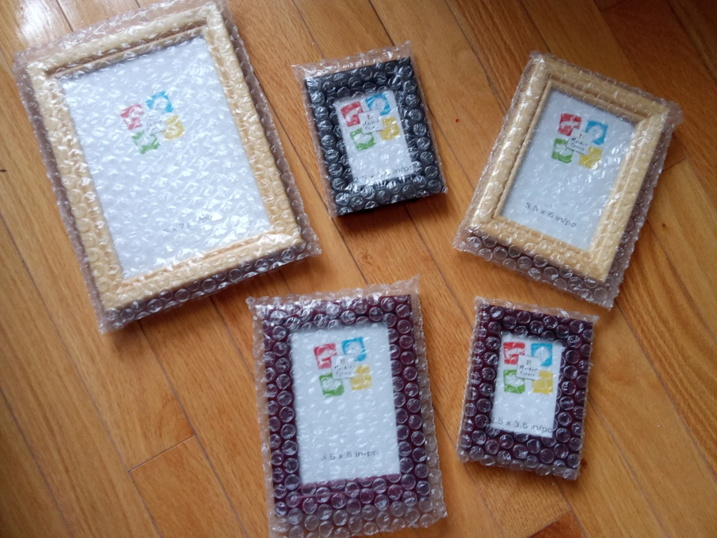 Assorted photo frames from Market Square. Includes sizes 3.5 x 5 in, 4.5 x 5 in, 5 x 7 in, 2.5 x 3.5 in, and 3.5 x 5 in. These frames are perfect for displaying your favourite memories!