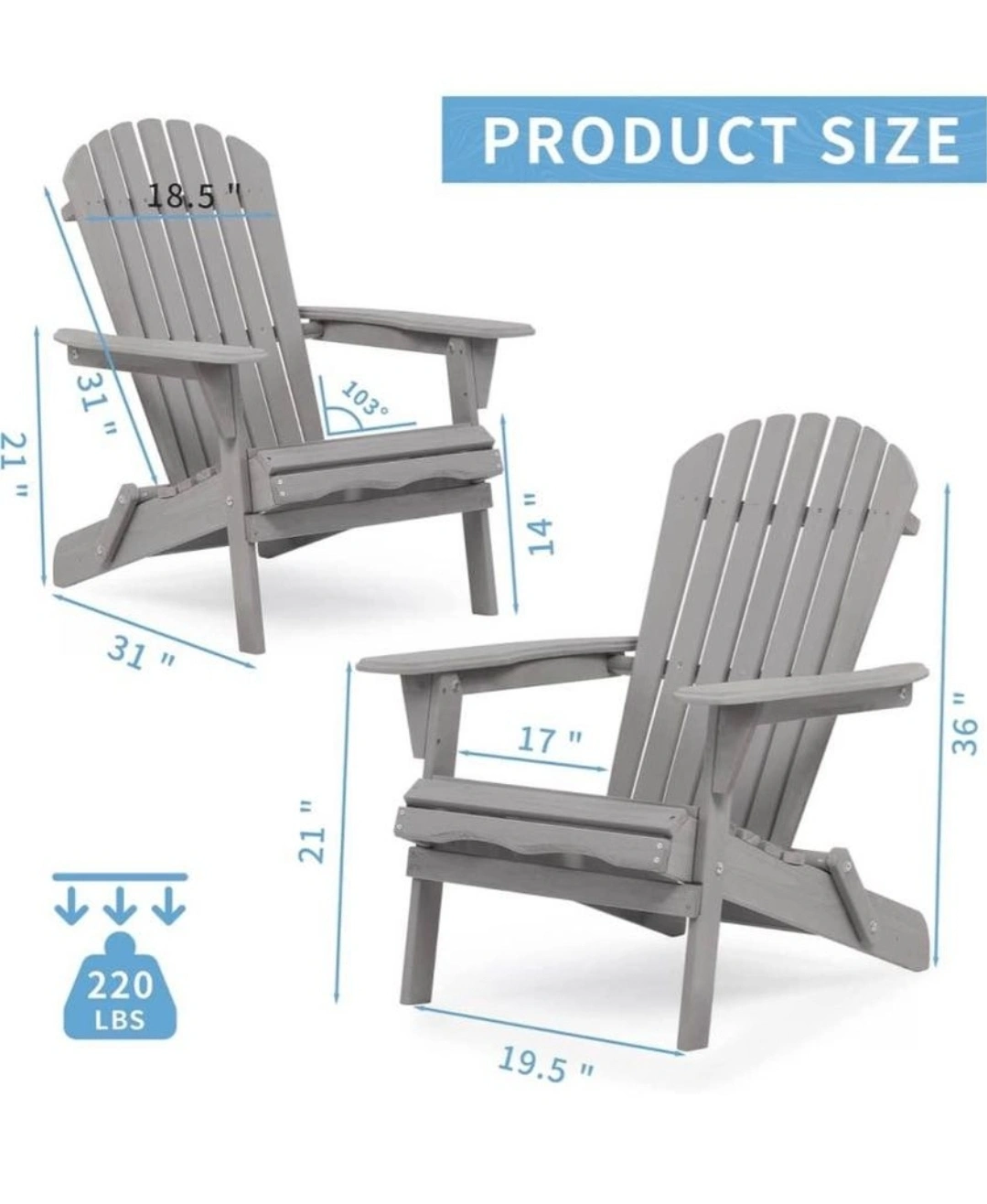 Wooden Outdoor Folding Adirondack Chair Set of 2, Half Assembled, Lounge Chair for Patio Garden Lawn Backyard Deck Pool Beach, Cedar Wood