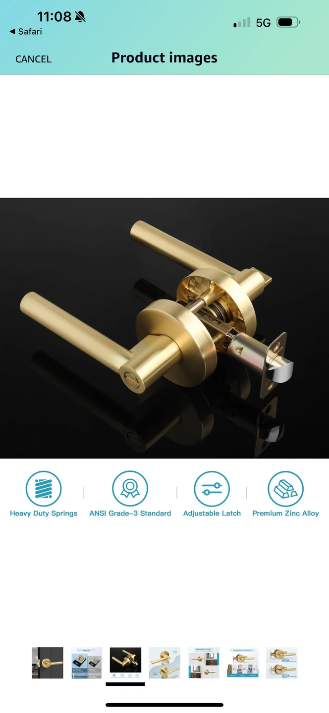 Gaurqiah Privacy Door Lever, Heavy Duty Door Handle,Thumb-Turn Locking Inside,Round Design Reversible Door Lock for Hallway or Bathroom-Satin Brass Finish ,