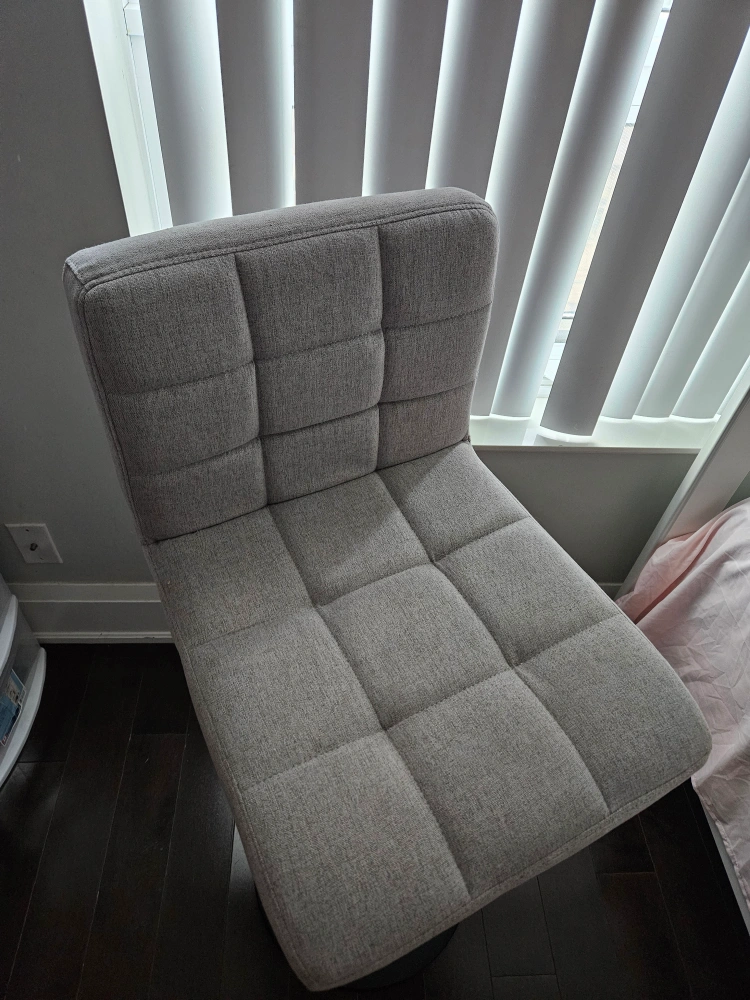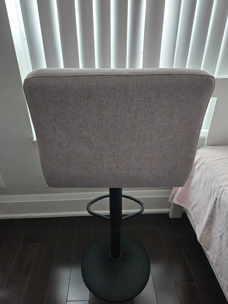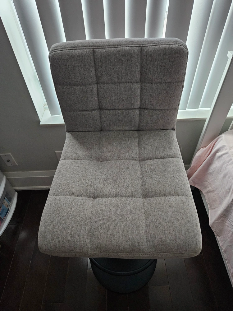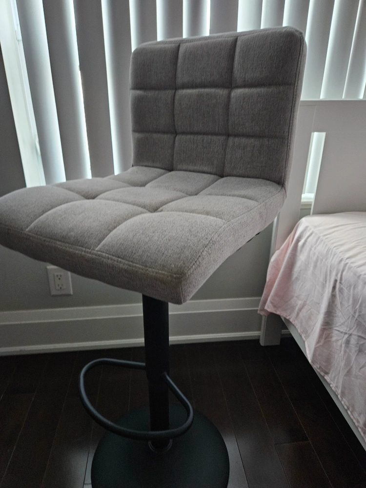Soft sturdy padded counter stool. Adjustable height. 16.5"X16.5"X( 35-45")-Seat height 25.5"- 33.5". Less than 1 yr owned gently used. 2 Available. $70 each. $120 for pair.