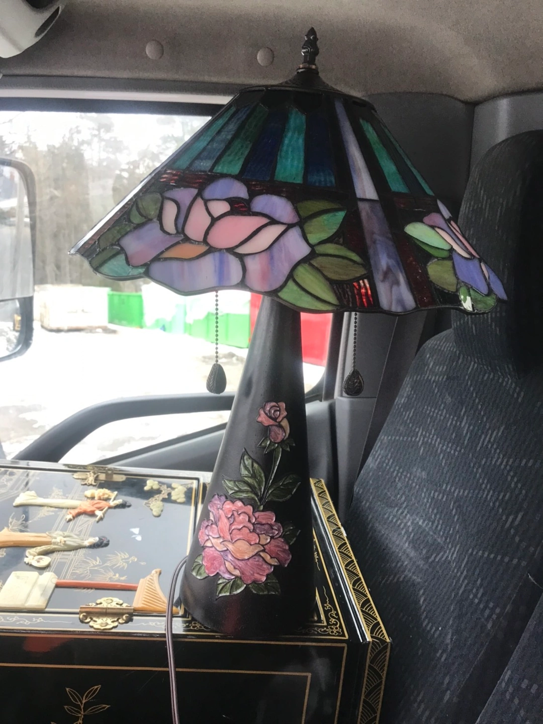 Stained glass table lamp double bulb with 2 on -off pull chain switches.
