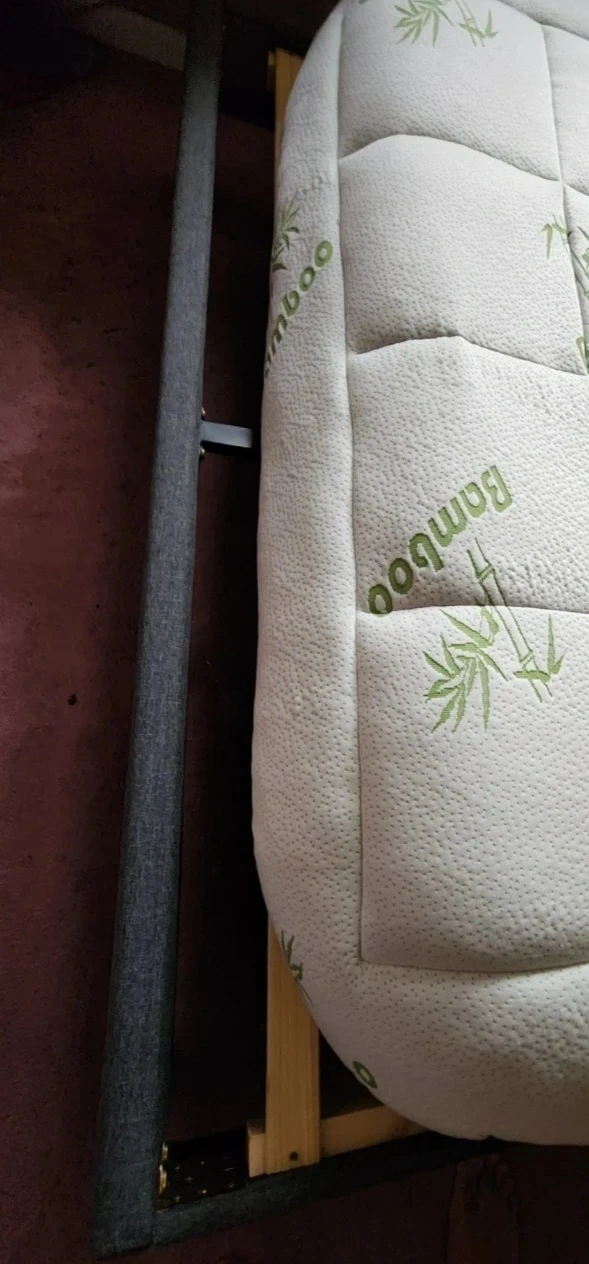 This is a bamboo mattress topper. It has a quilted design with bamboo leaf patterns. Adds extra comfort to your mattress.not even a year old. Comes with memory foam mattress and 2 twin size mattress, can be bought separately