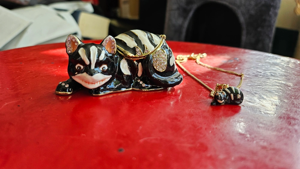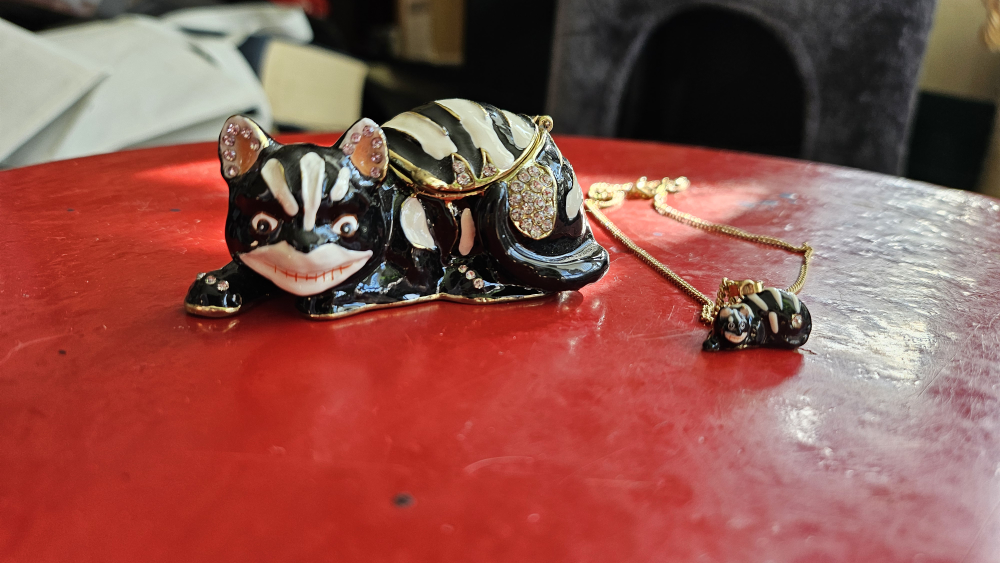 CHESIRE CAT TRINKET BOX WITH MATCHING CHAIN