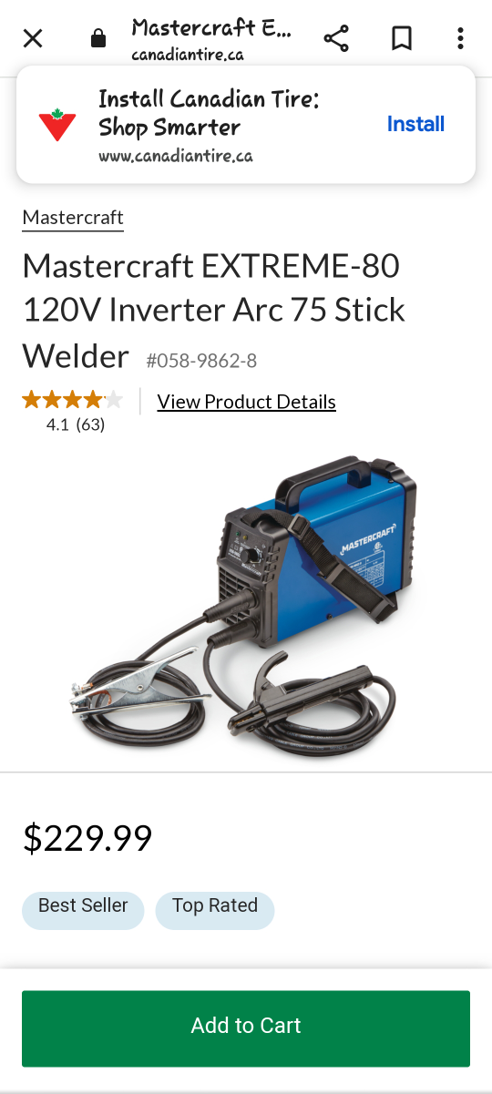 The Mastercraft Inverter Arc 75 Stick Welder delivers a smooth, consistent DC inverter weld arc