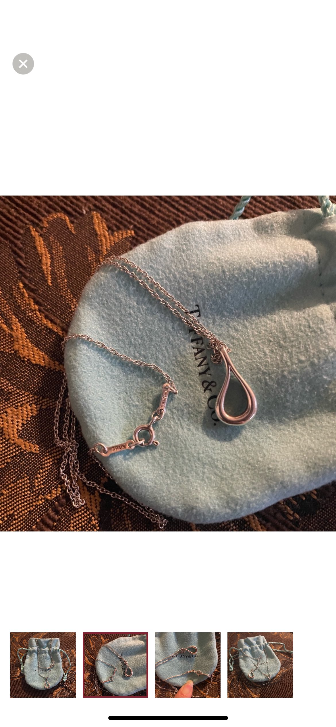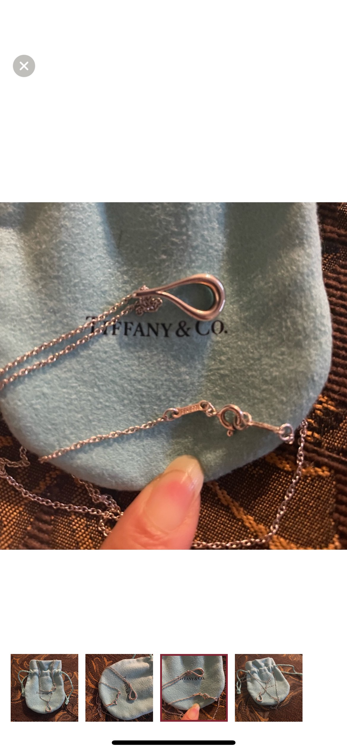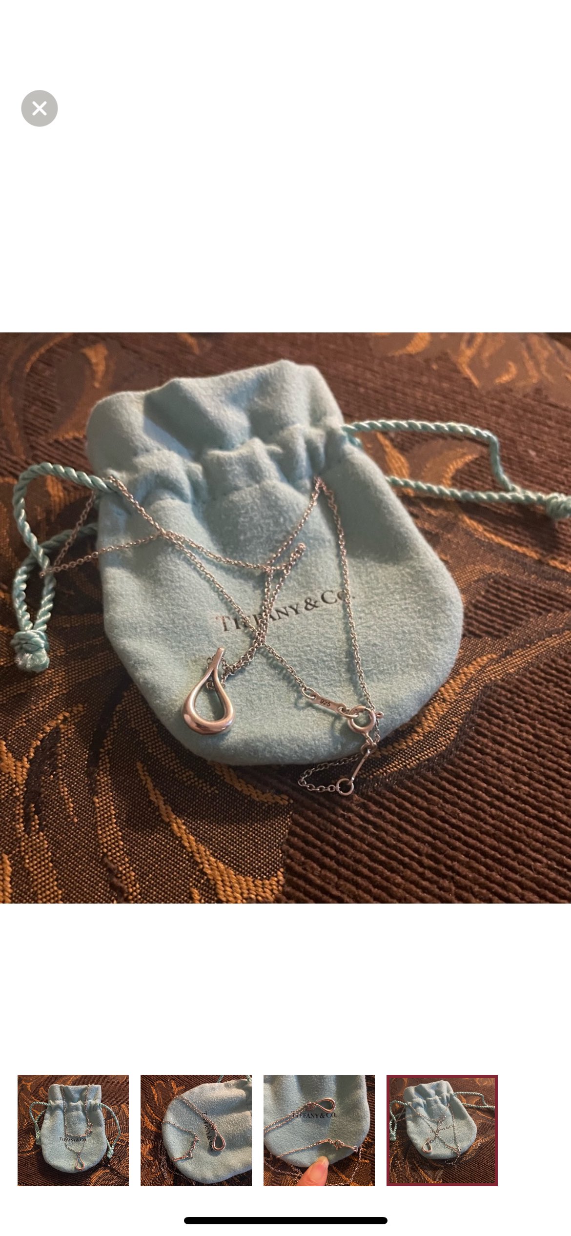 1 / 41 / 4Buy & SellTiffany Open Teardrop NecklaceTiffany Open Teardrop Necklace$125100% Authentic. Didn’t wear it that much so therefore in pretty pristine condition. Comes with pouchConditionLike newSize16” in length BrandTiffany & Co.WHERE TO MEETJane Street & Sheppard Avenue WestView MapSELLERverifiedAlisaJane Heights17811 reviews1 chats·5 favorites·248 viewsSEND CHAT TO SELLERHi Alisa! I’m interested in your listing.Hi Alisa! I’m interested in your listing.Get the Karrot app to chatSign In to chat
