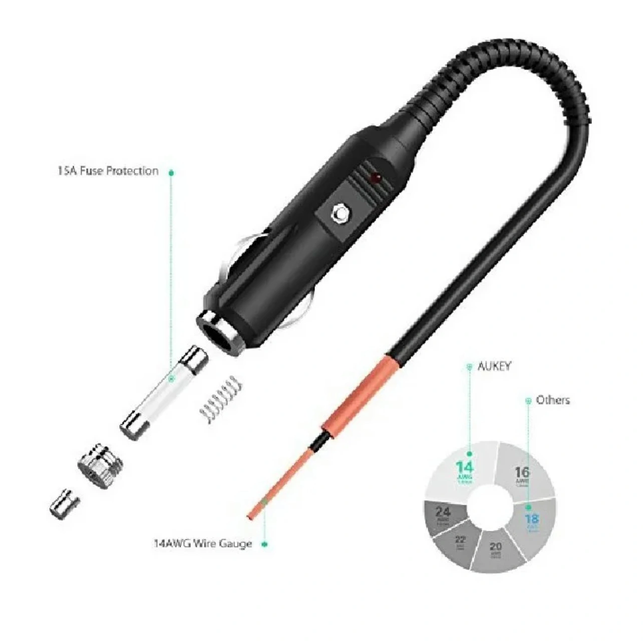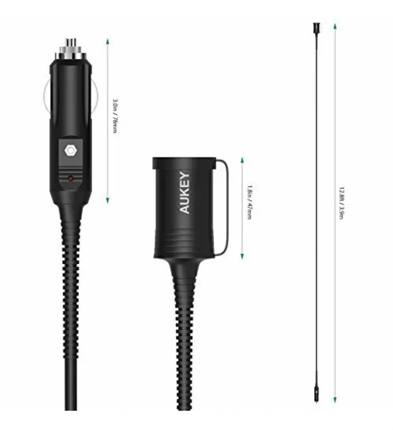Package Contents: AUKEY CC-P01 Car 12V Socket Extension Cable