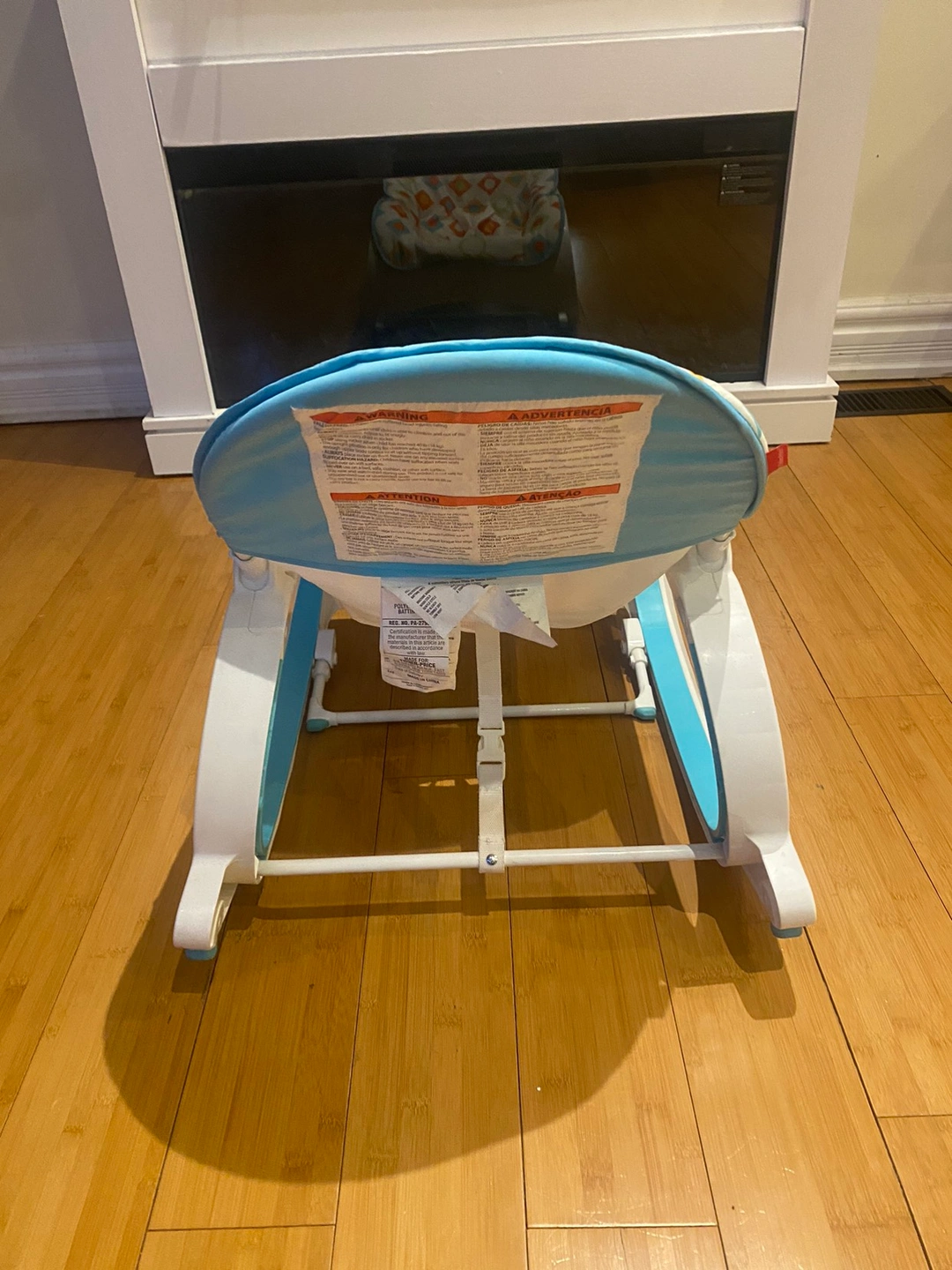 Stationary baby seat and rocker for use from infant to toddler (up to 40 lb/18 kg)
