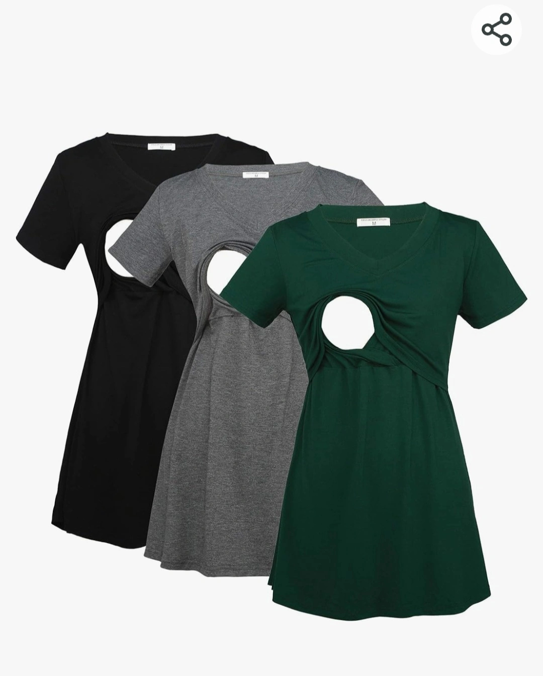V Neck Nursing Tops Maternity Breastfeeding Tee Shirts