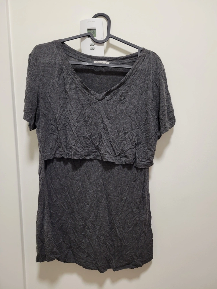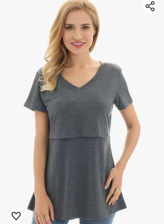 🥕 Grey Short Sleeve V Neck T-Shirt Marernity Nursing Top