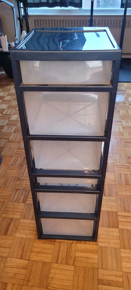 This is a sturdy, heavy plastic storage unit. 6 drawers in total. Great for paint, hobby craft, paper, linen, etc.