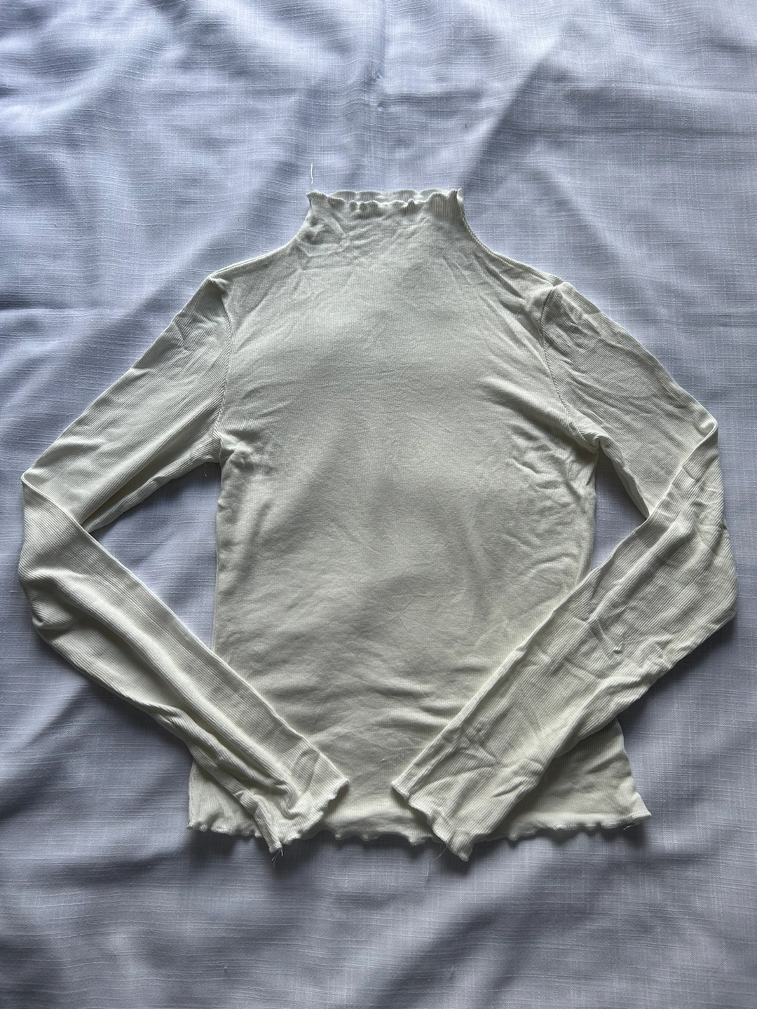 - 8/10 condition - size: medium - slim fit, slight stretch, mock neck, lettuce trim - a few threads, a little see through pick up at edmonds community centre, edmonds station, or new westminster station CASH preferred or etransfer