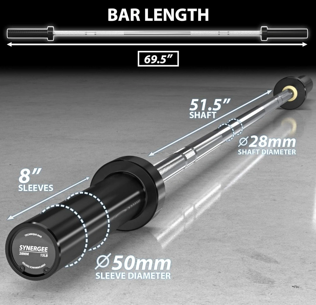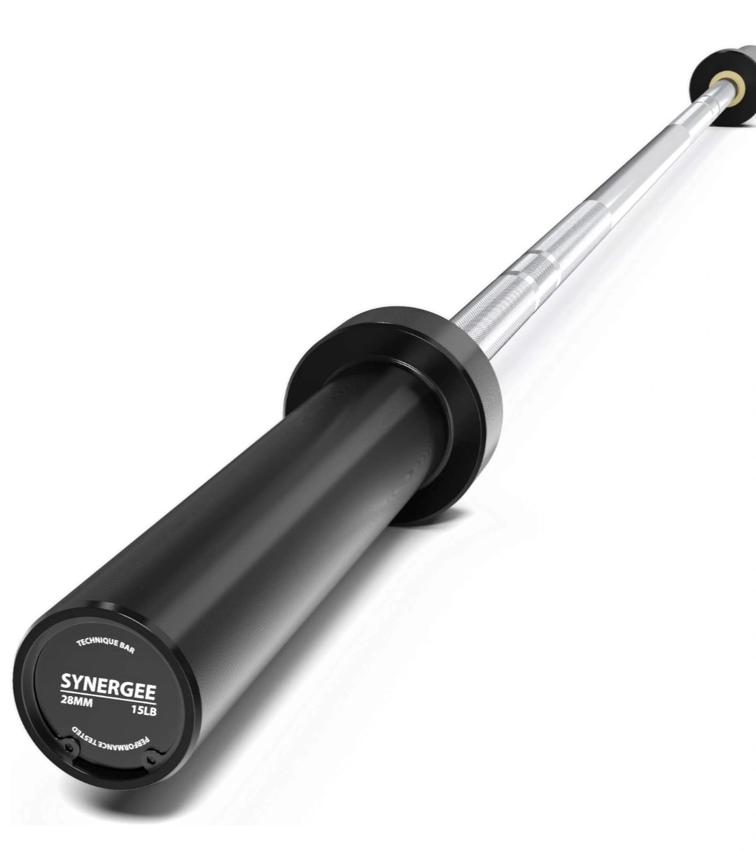 Synergee 15lb Technique Barbell Aluminum Bar for Form & Technique Training for Power & Olympic Lifting.