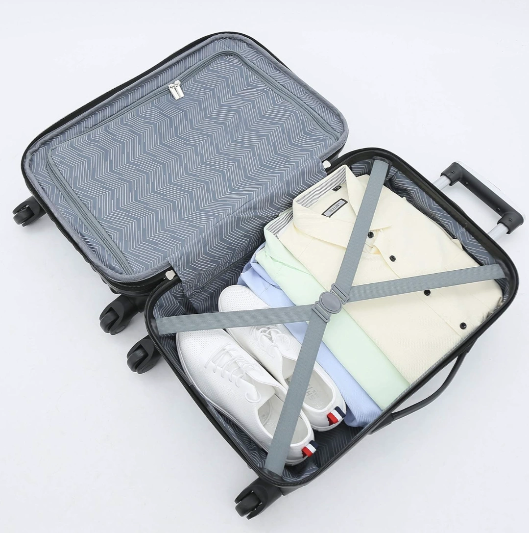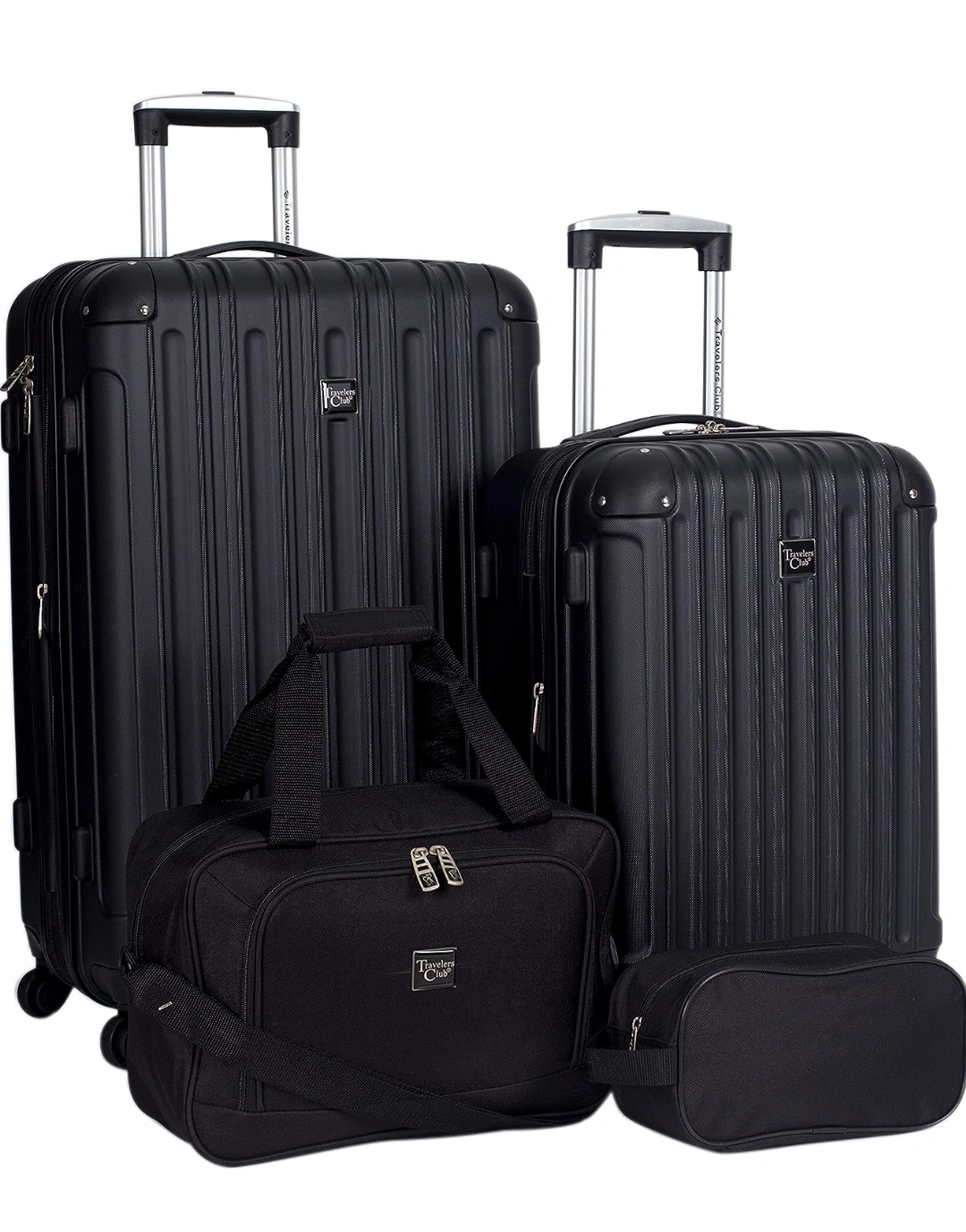 Black 4 piece luggage expandable, light weight set that has 360Β° spinners and 20" only carry on approved for most airlines.