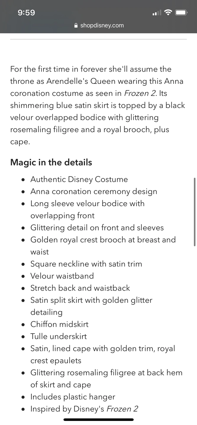 Brand new with tag Anna costume from Frozen 2 from Disney store. Size 4T