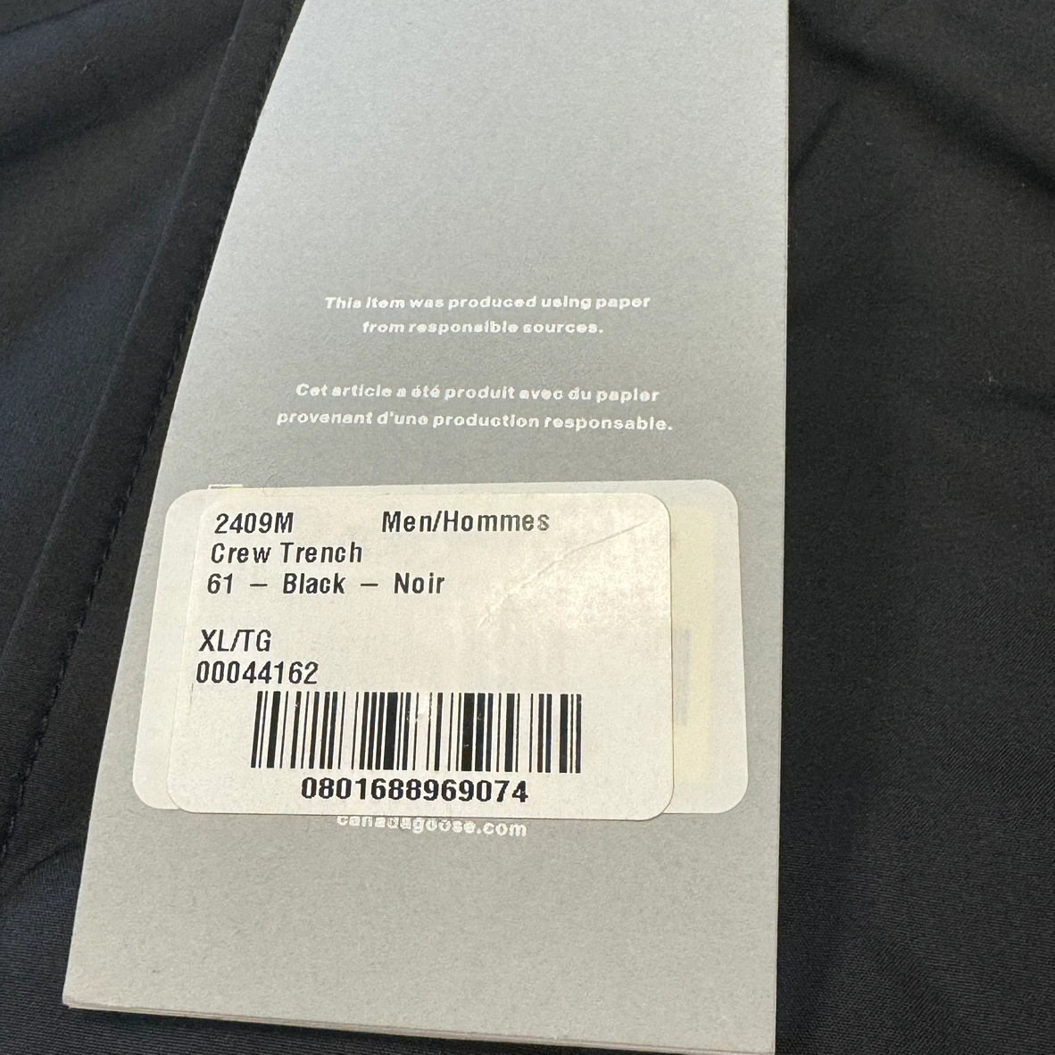 Authentic Canada Goose Men’s (unisex style) black crew trench in XL. Brand new with tag and comes with its unique code and eligible for its warranty. Can be a great gift.