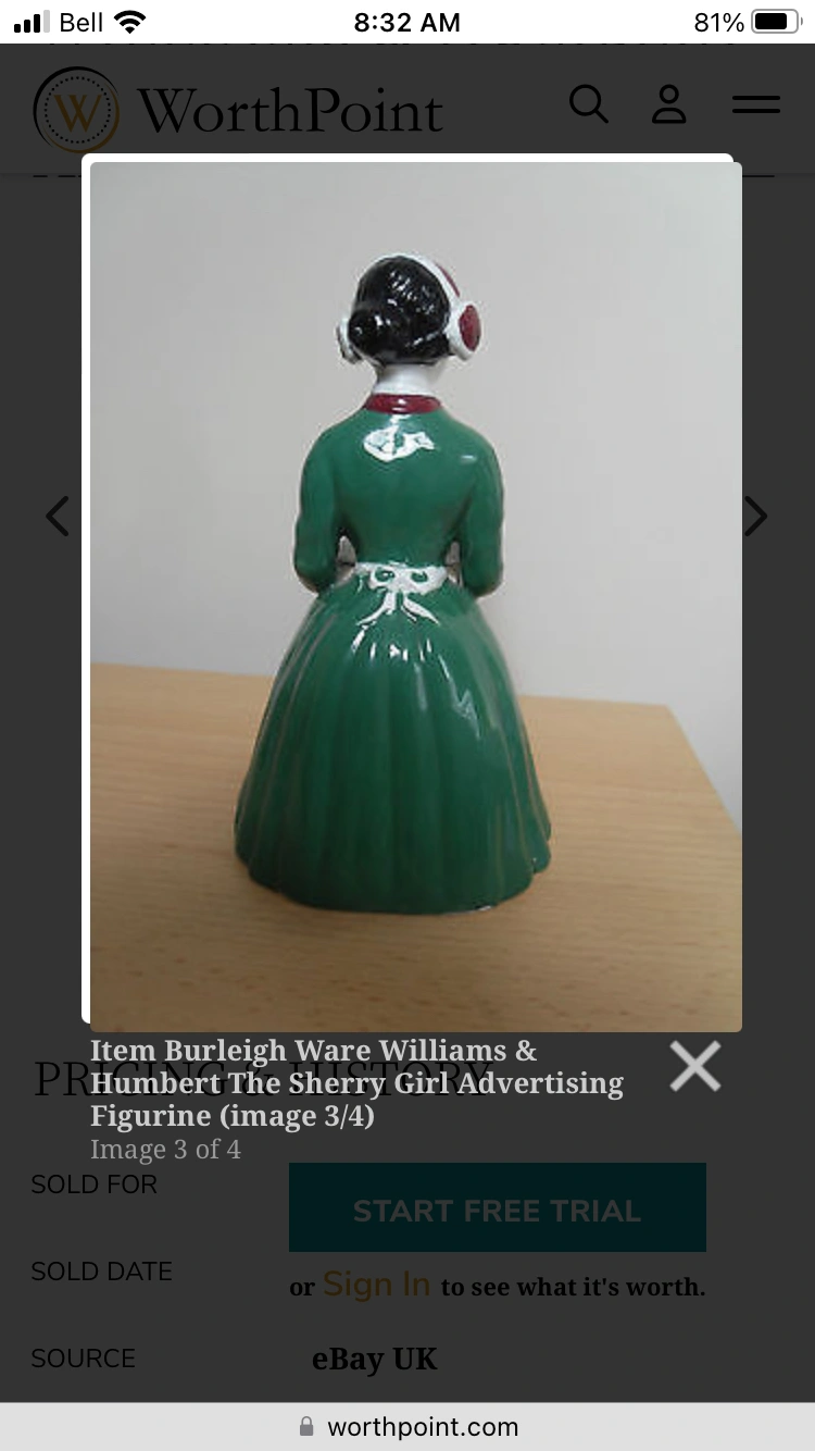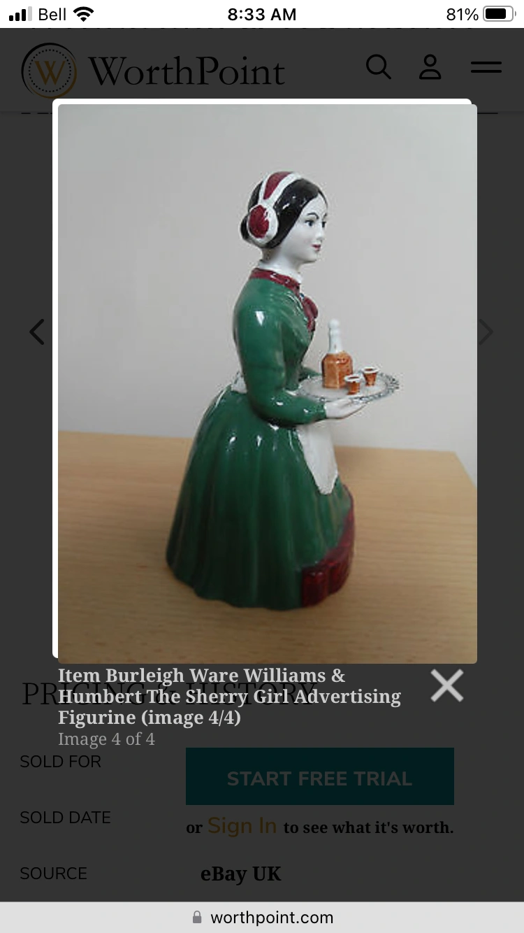 Vintage Collectible BURLEIGH WARE WILLIAMS & HUMBERT THE SHERRY GIRL ADVERTISING FIGURINE