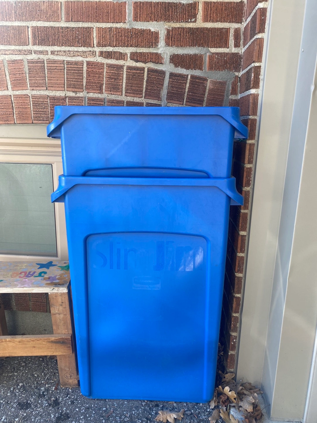 2 Rubbermaid Blue Slim Jim recycle bins