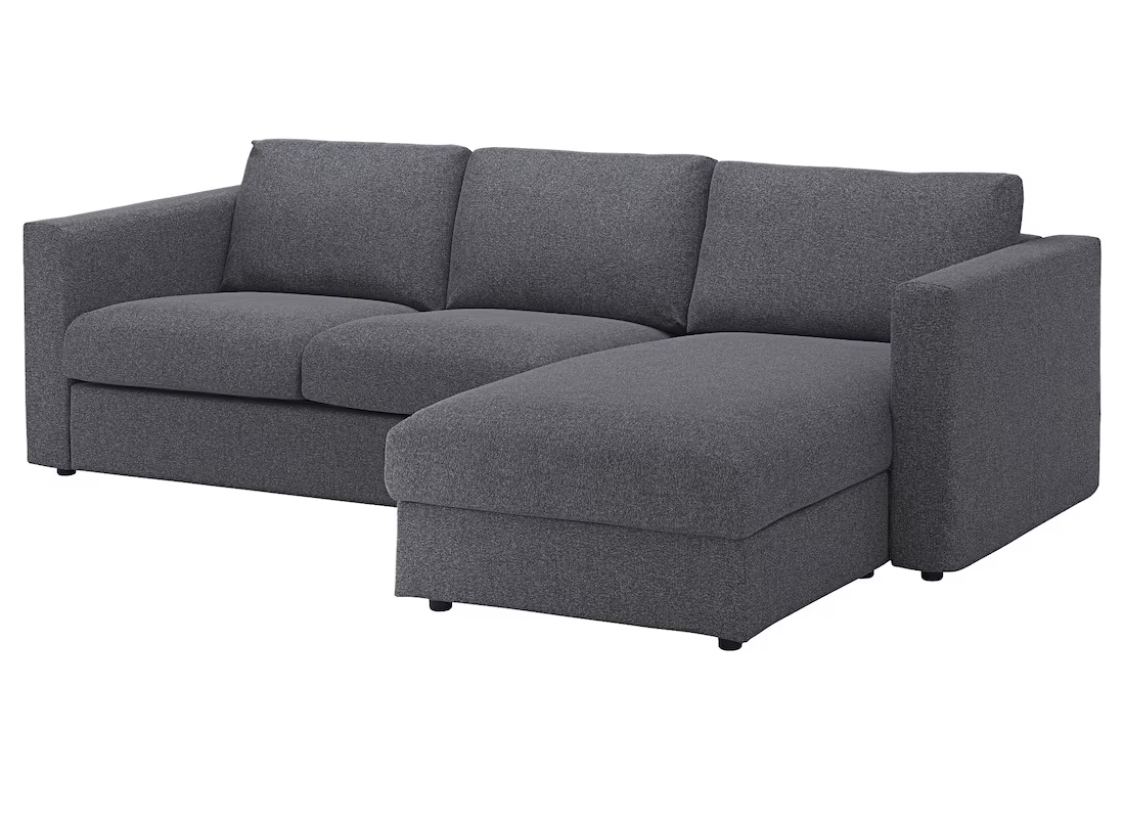 IKEA FINNALA cover for sectional, 3-seat, with chaise/Gunnared medium gray