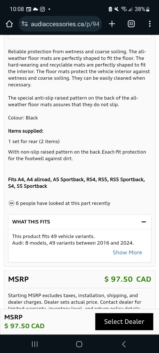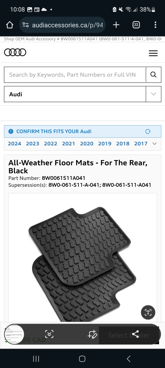 Brand New Audi/VW Rear Rubber Floormats π₯