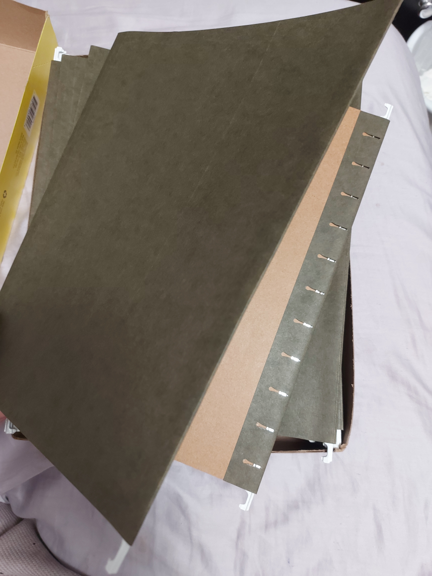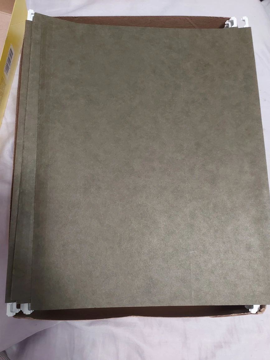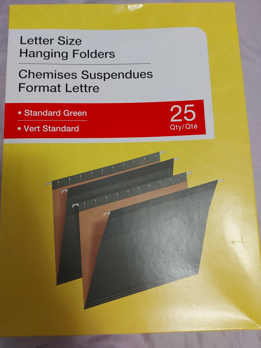 -box of 25 letter size hanging folders -only a few are used, most brand new -green colour -bought from staples