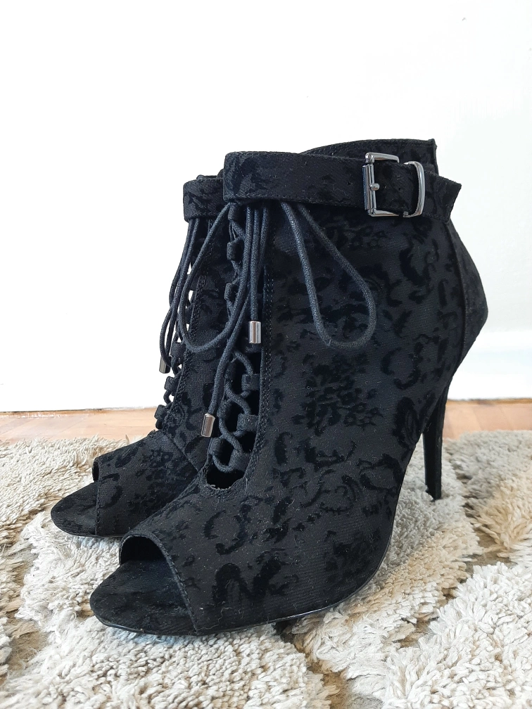 Velvet Black Peekaboo Stiletto Booties