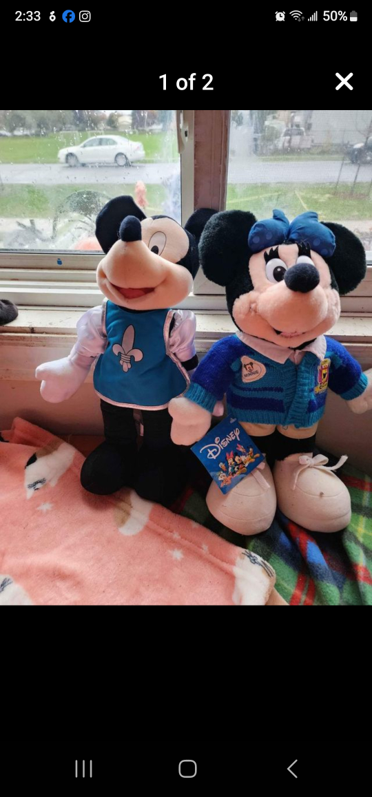 Authentic Minnie and Mickey Mouse Dolls(approximately 13 to 16 ins in size) ment for collecting not a toy