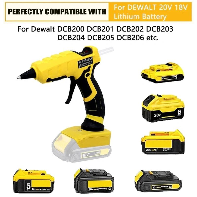 Great for repairs and lots of projects, cordless function. For Dewalt 20V Batteries. 3 mins to be fully heated. 30 glue sticks included. Battery not included.