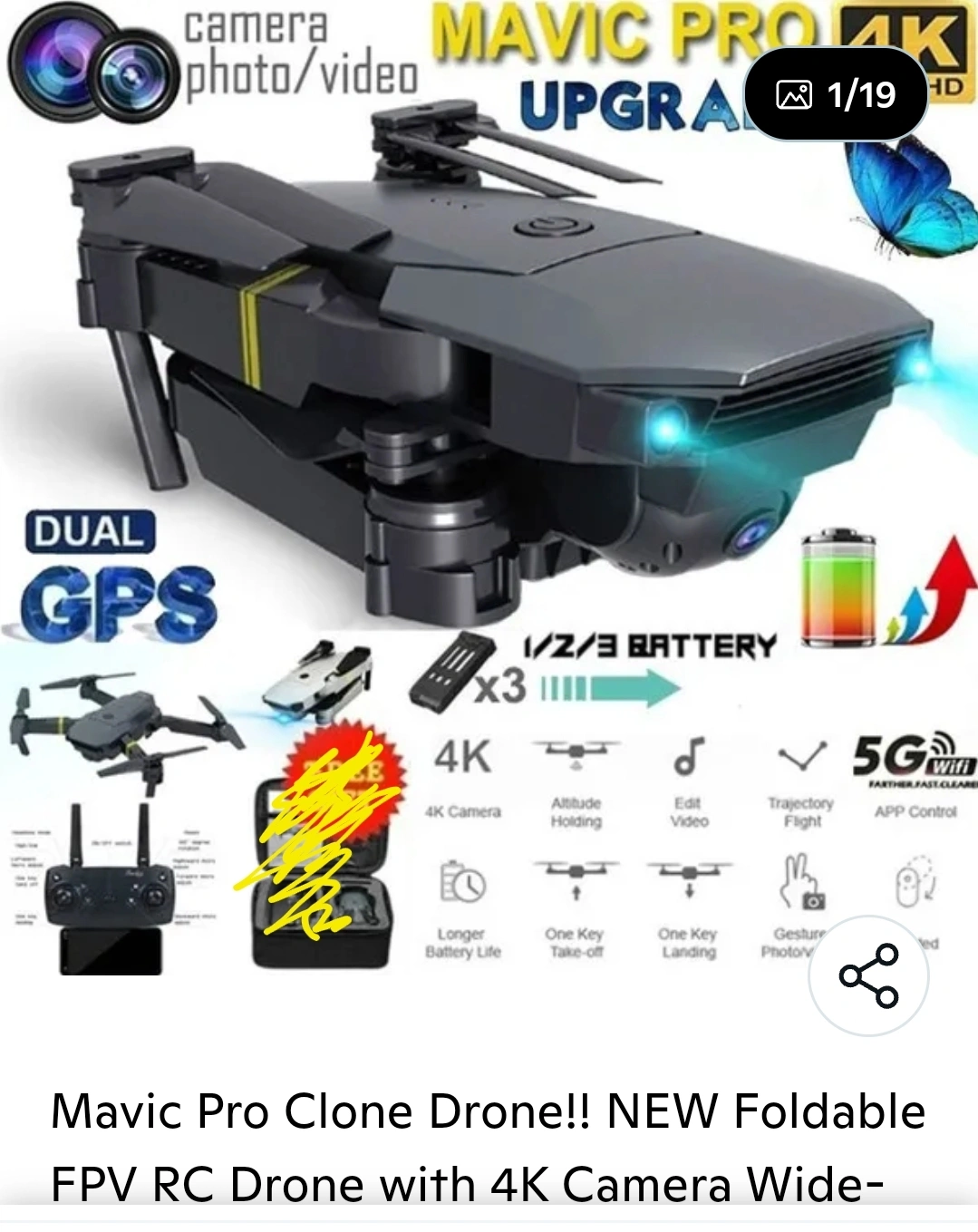 it takes 3 double AA batteries,( not included), and the drone charges by micro usb, WiFi_CAM app to use the camera,the app on Google play, is shown in the pictures I have taken for you too see