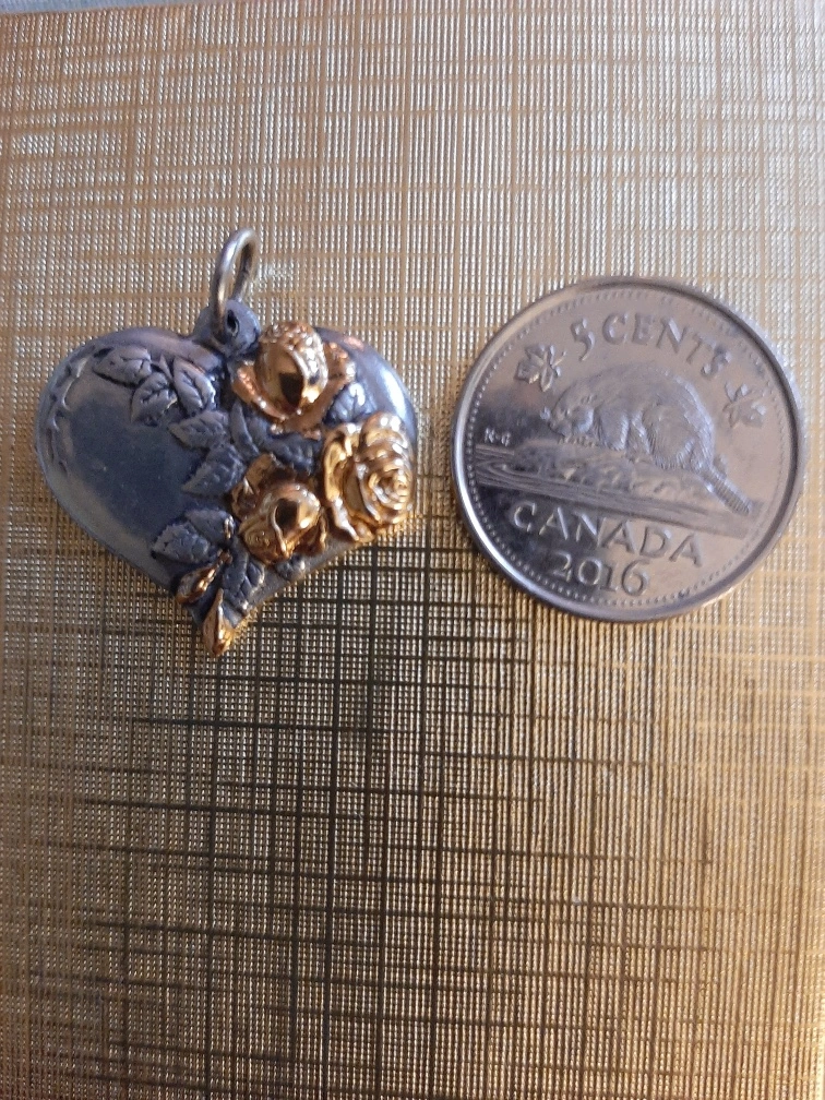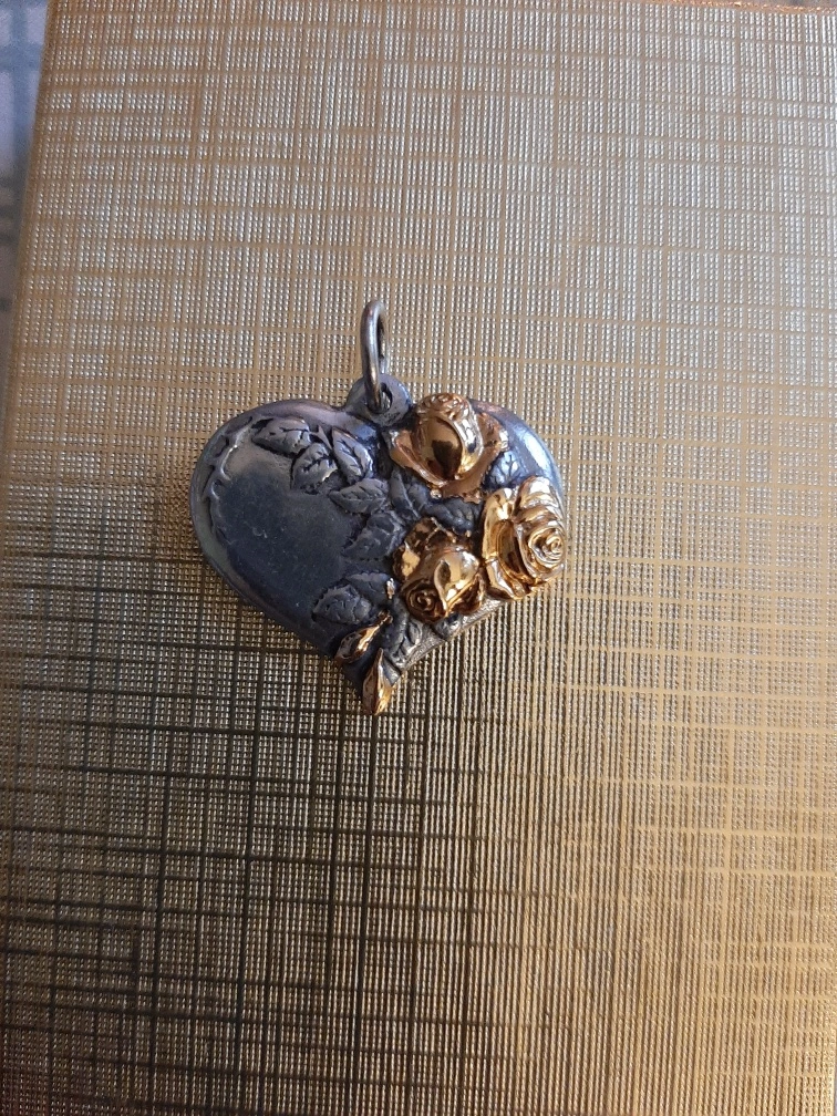 Royal Selangor pewter heart pendent with gold coloured flower detail & pewter petals. Pendant only, no chain. Gently used.