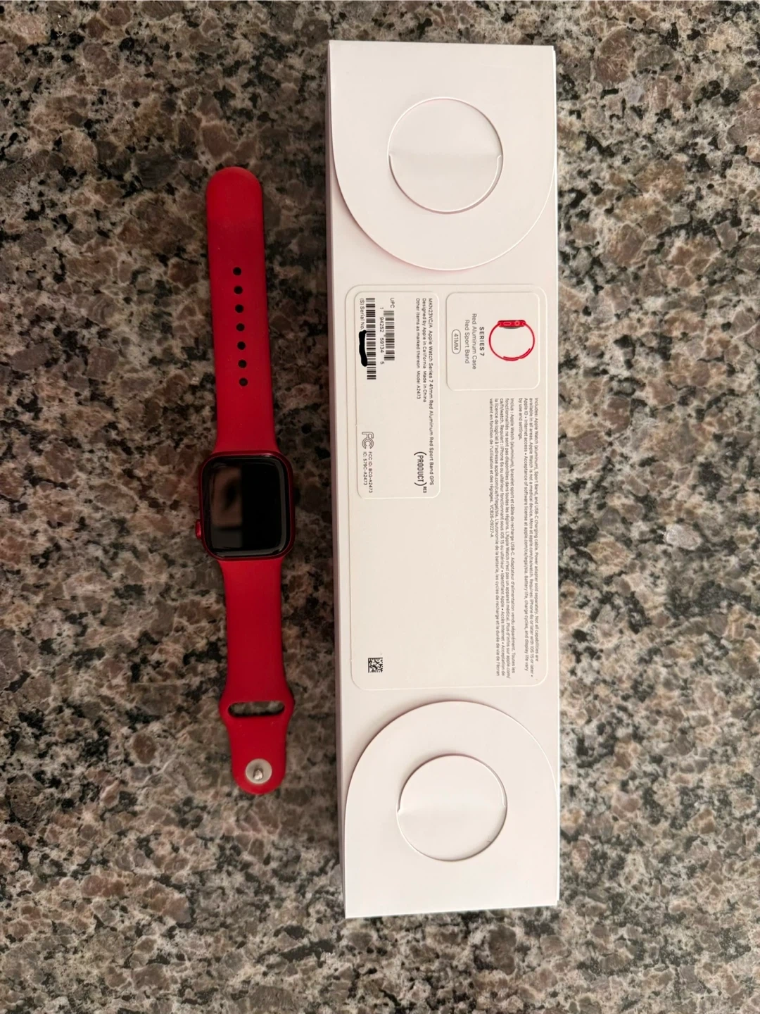 Selling my Apple Watch Series 7 in (PRODUCT)RED. 41mm Red Aluminum Case with Red Sport Band. Comes with the original box and both band sizes included.