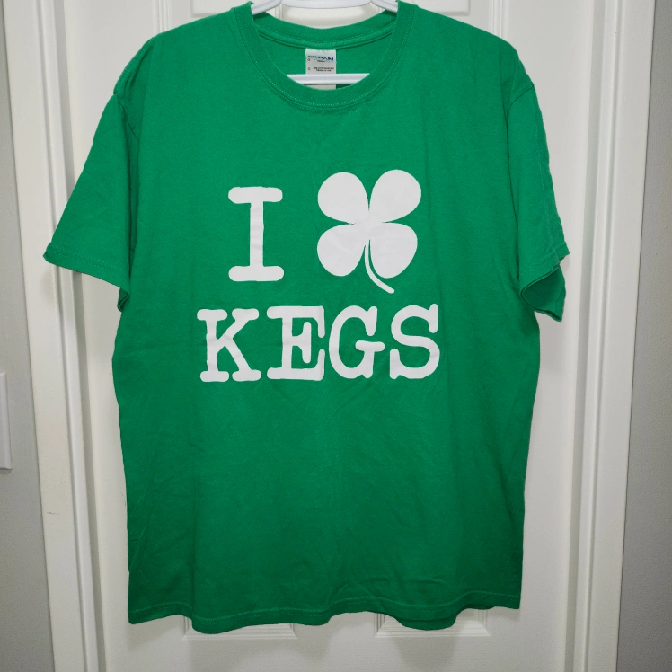 *I ๐ KEGS* Green T-Shirt with White Graphics. #L. Gender Neutral Fit. 100% COTTON.