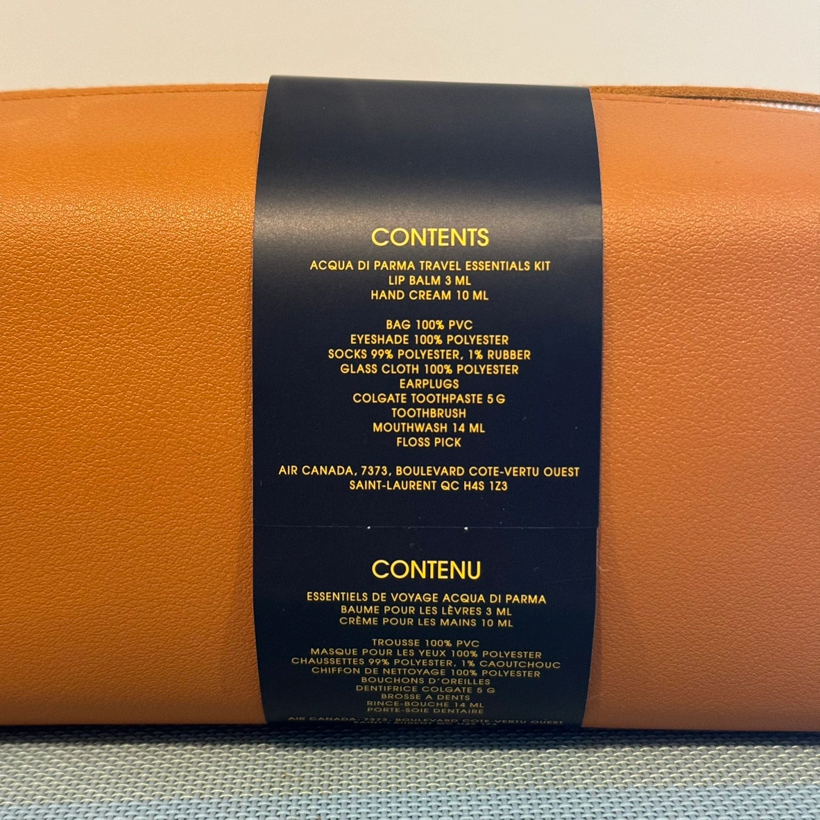 Brand new, unused Acqua Di Parma travel essentials kit from a 2024 Air Canada first class international flight.