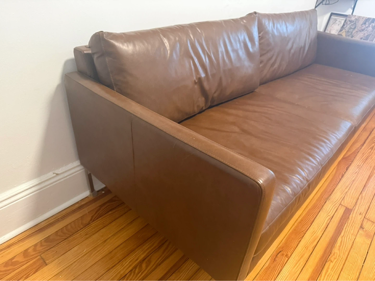 MOVING OUT SALE - Brown Leather Sofa - WEST ELM