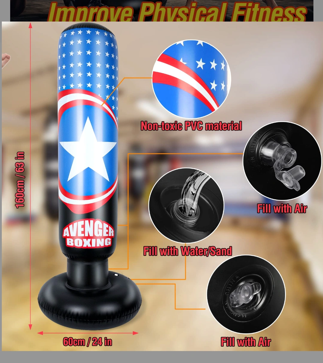 Kids inflatable punching bag with pump included. Measurements in pics